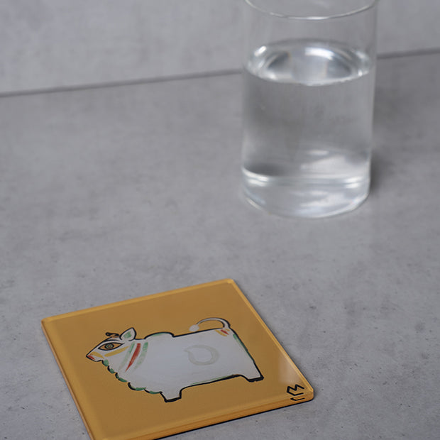 Jamini Yellow Cow Acrylic Coaster