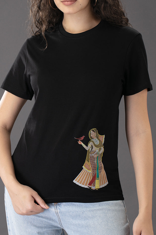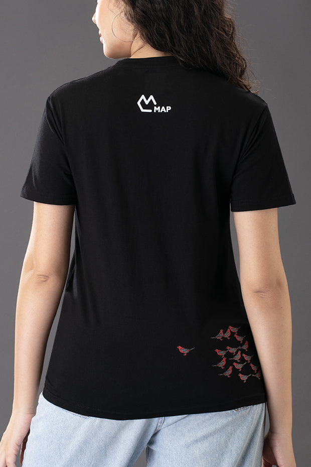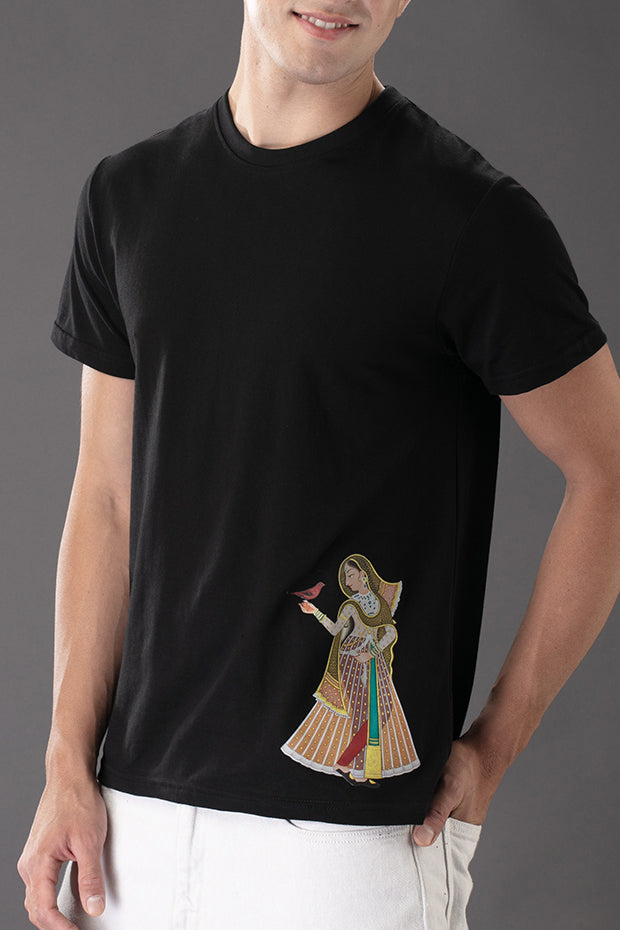 Aghan Baramasa motif T-shirt, inspired by traditional storytelling in textile art.