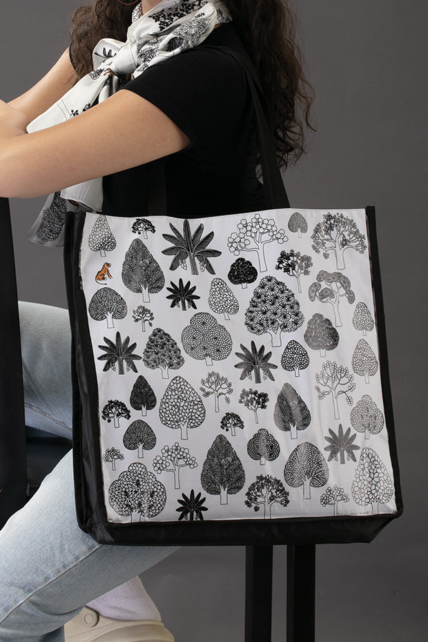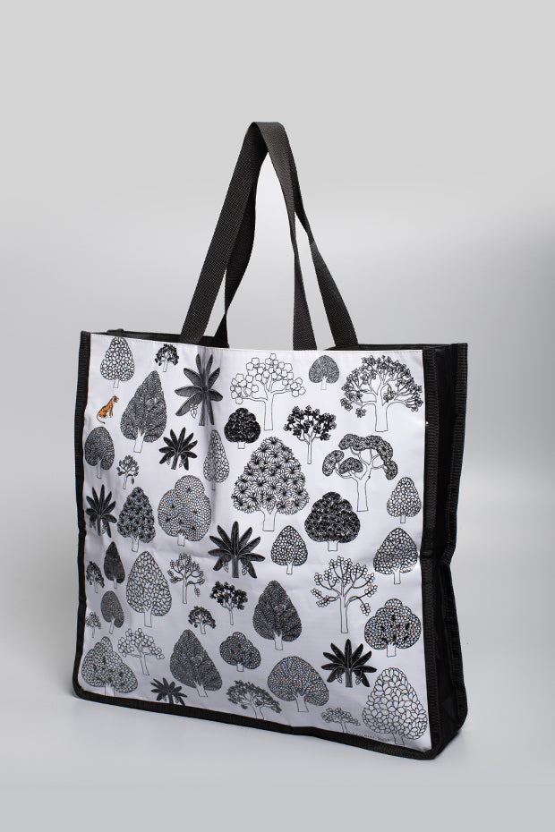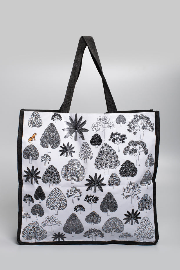Durable polymer tote bag with Ashwin’s design, artistic and functional.