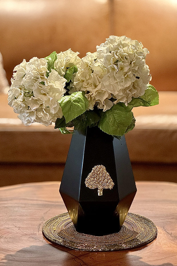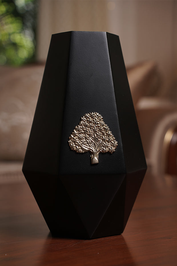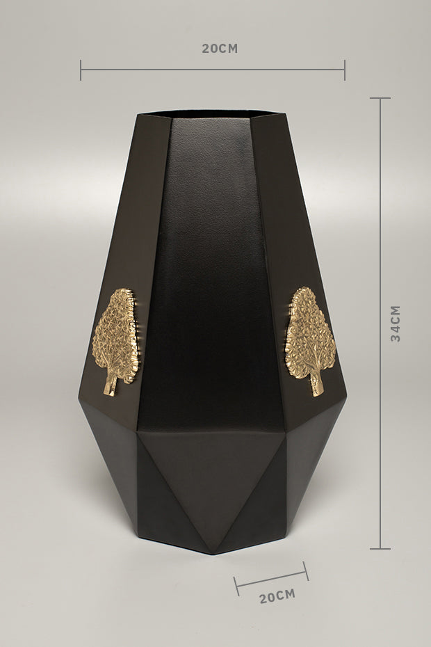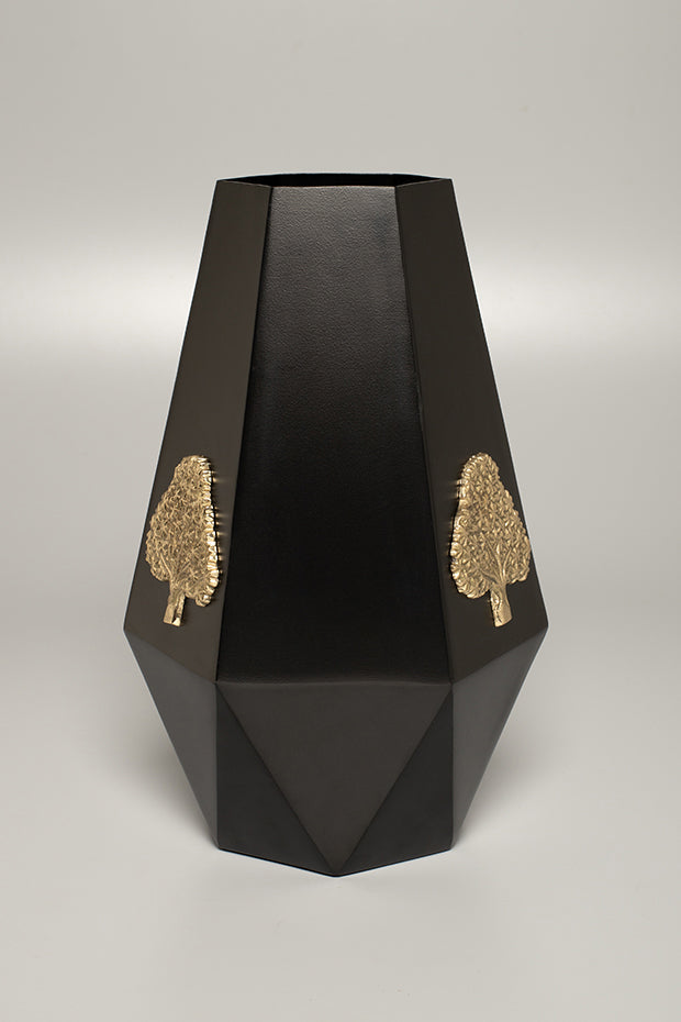 Hexagonal vase featuring Baramasa motifs, blending heritage art with modern form.