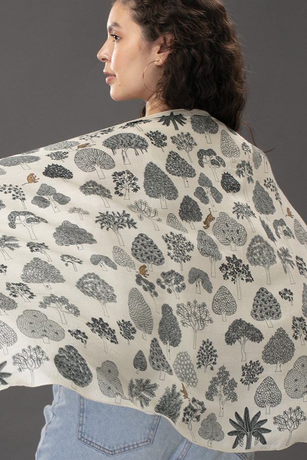 Baramasa Silk Stole S, seasonal storytelling on soft silk fabric.