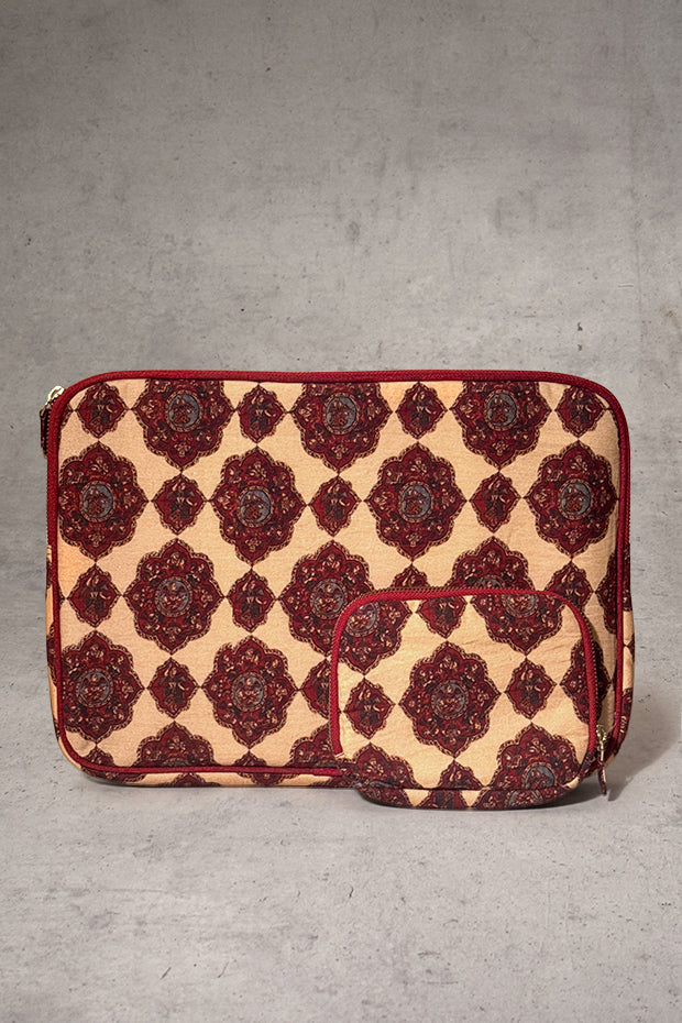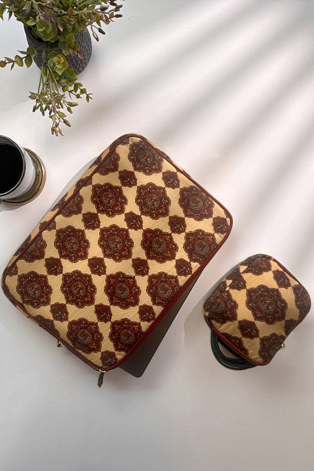 Carry your laptop in timeless elegance with this Beige Pichwai Laptop Sleeve. Inspired by traditional Pichwai art, its subtle tones and detailed motifs bring a refined, art-led touch to your everyday work essentials.