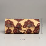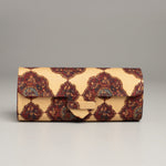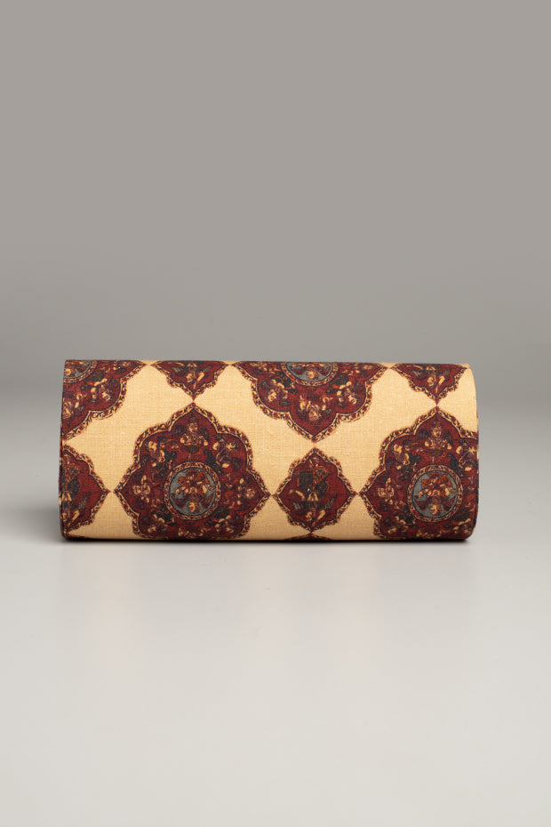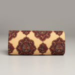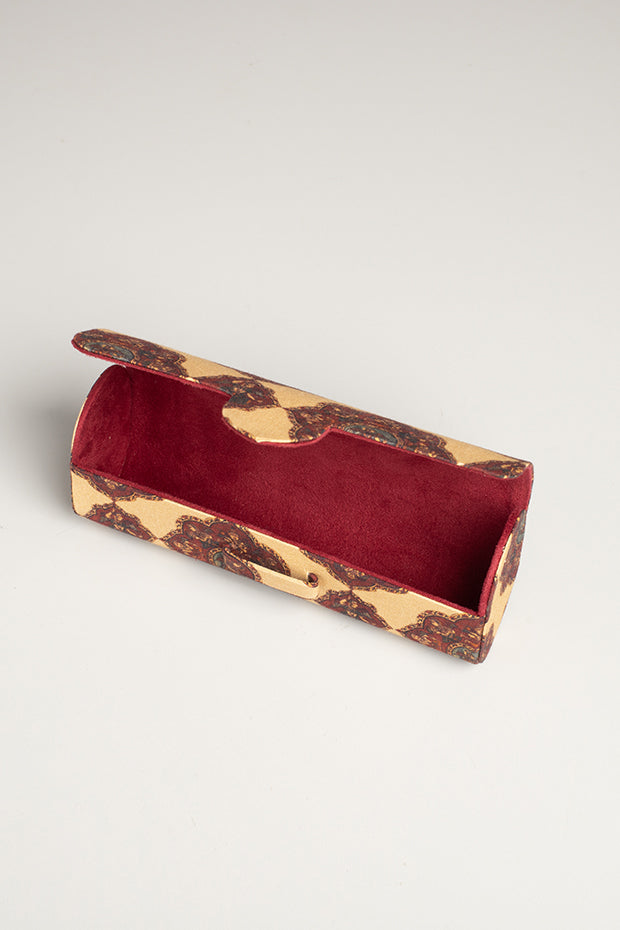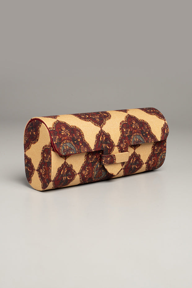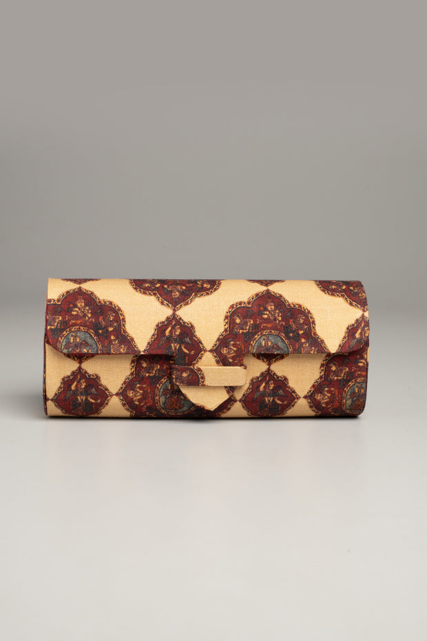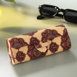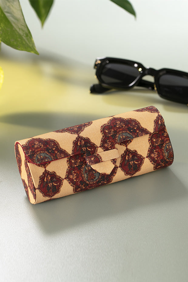 A protective spectacle case with beige Pichwai designs, stylish and practical.