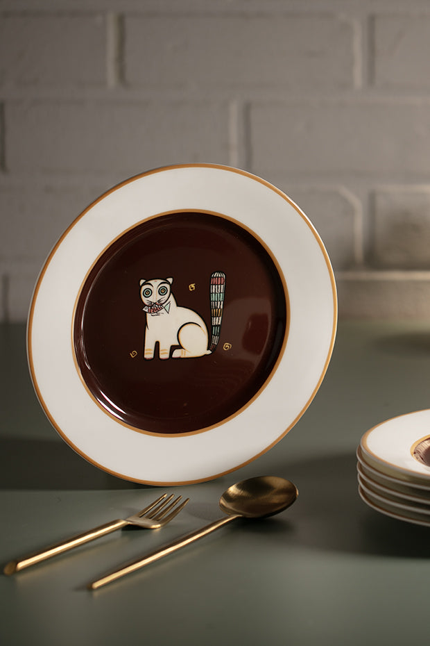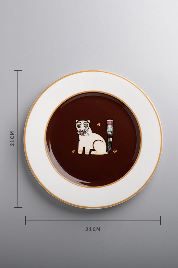 Bring home a touch of iconic Indian art with this beautifully designed quarter plate inspired by Jamini Roy’s celebrated artwork Cat With A Fish. Known for his bold lines and expressive folk-inspired style, Roy’s timeless aesthetic is thoughtfully translated onto this elegant dinnerware piece.