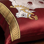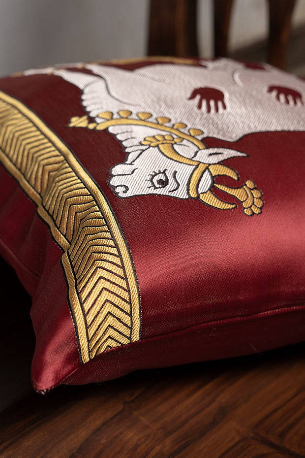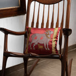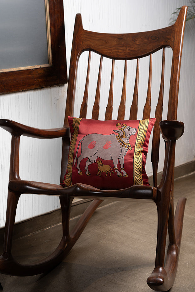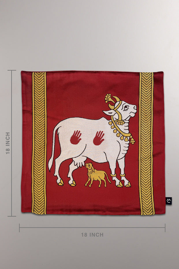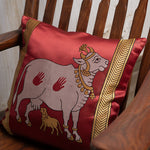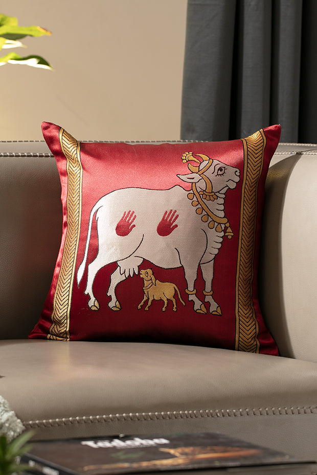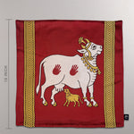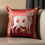 A small cushion cover with cow motifs in red, folk-inspired décor.