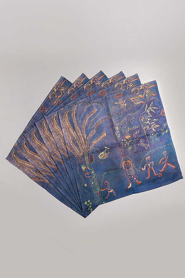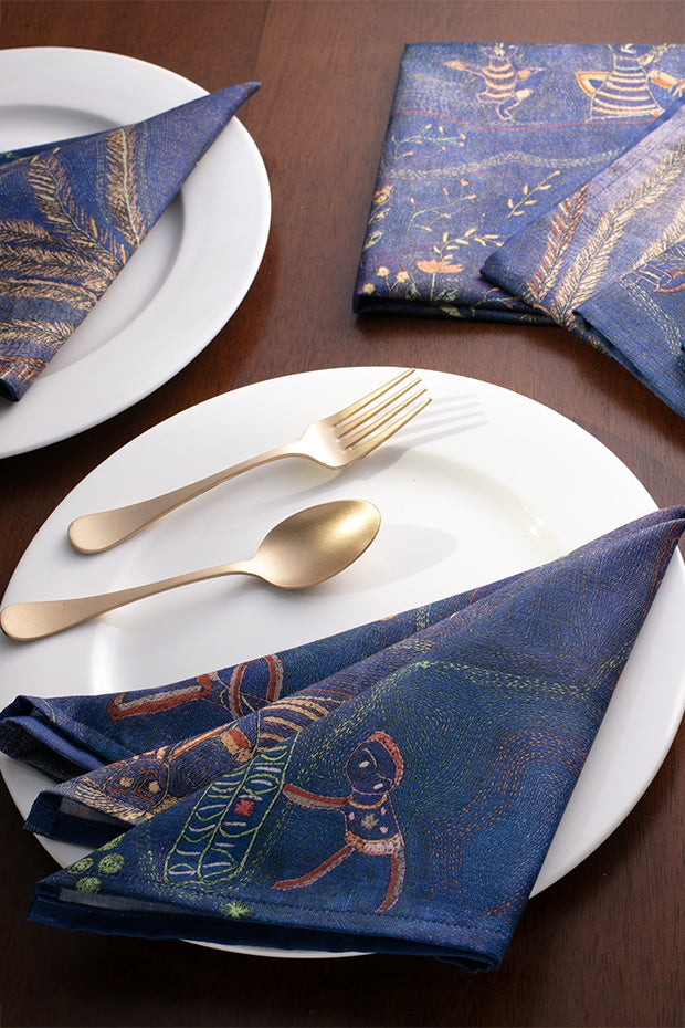 Napkins with Farmers in Blue motifs, celebrating rural artistry at the table.