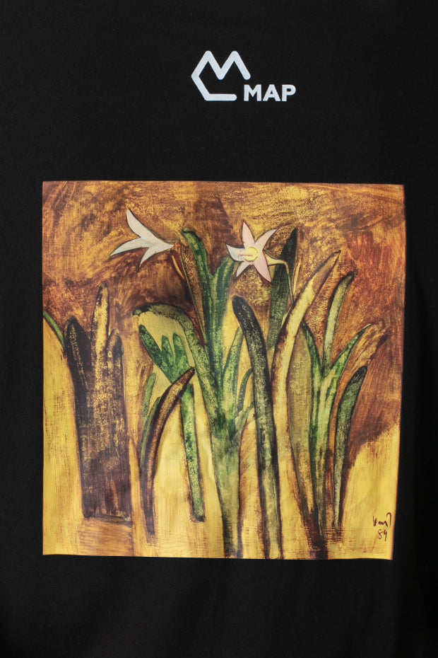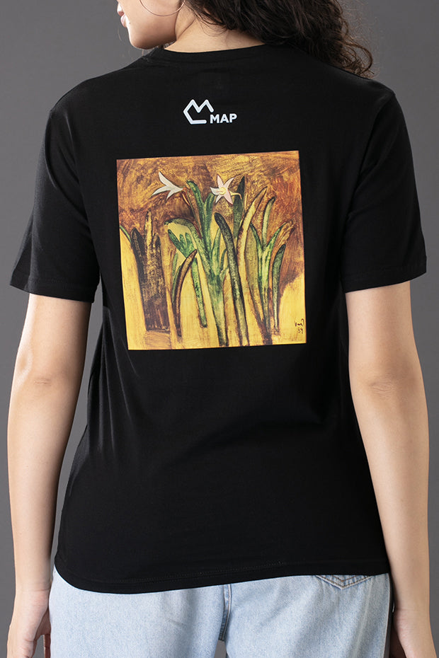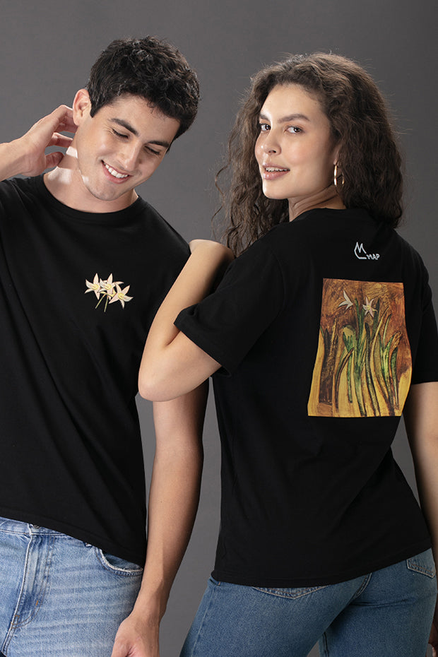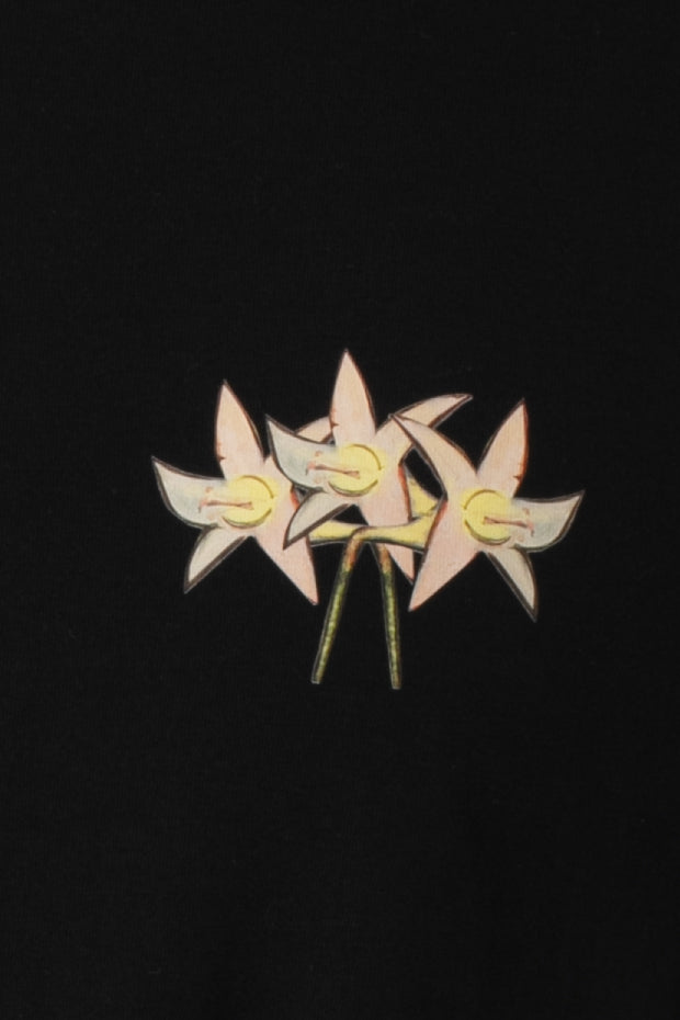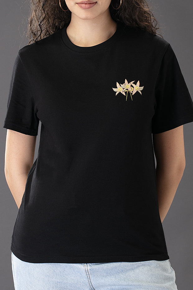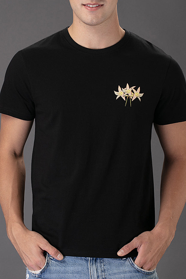 Flower in Black T-shirt, striking and bold with a minimal yet artistic touch.