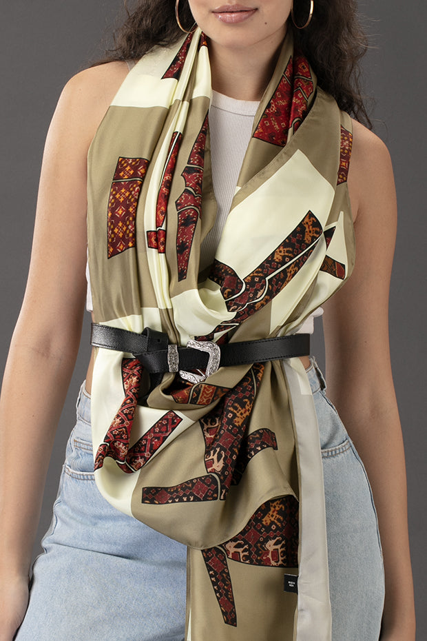 A lightweight stole with green Ikat motifs, perfect for daily wear.