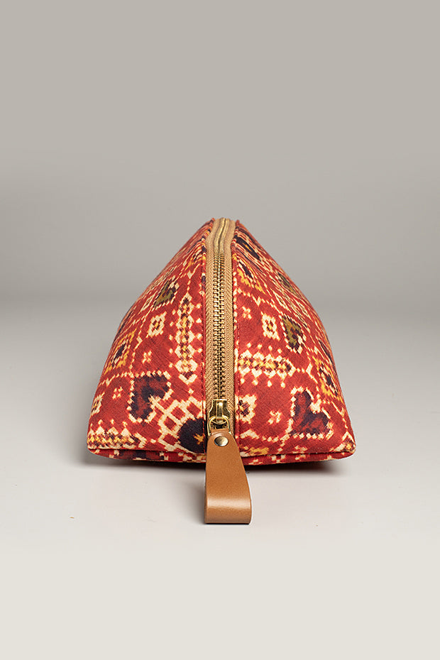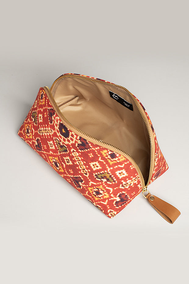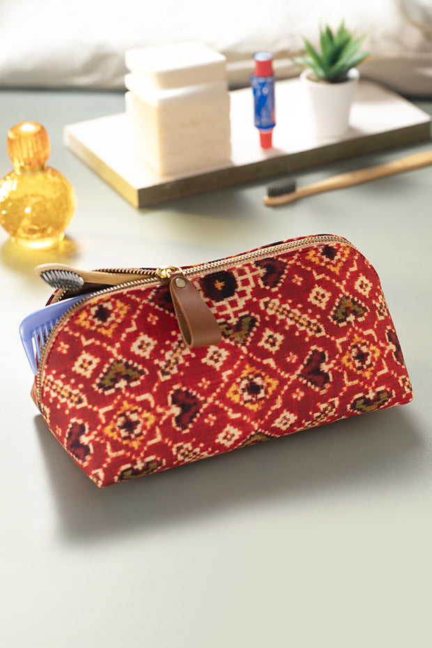 Ikat Print Toilet Kit, travel-friendly pouch inspired by Ikat weaves.
