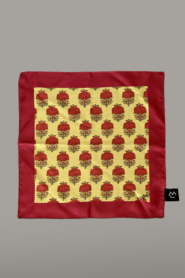 Jamawar Silk pocket square, luxurious and timeless with Kashmiri weaving patterns.
