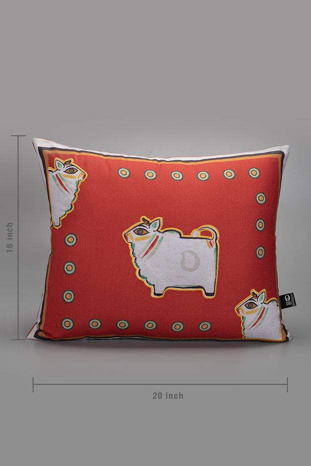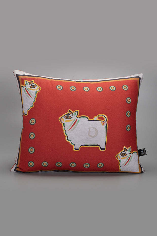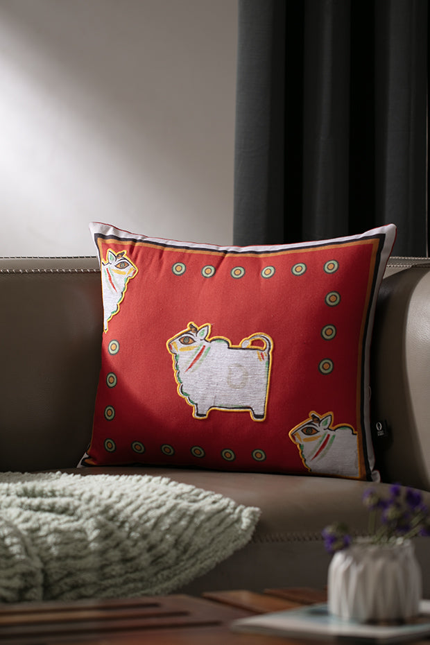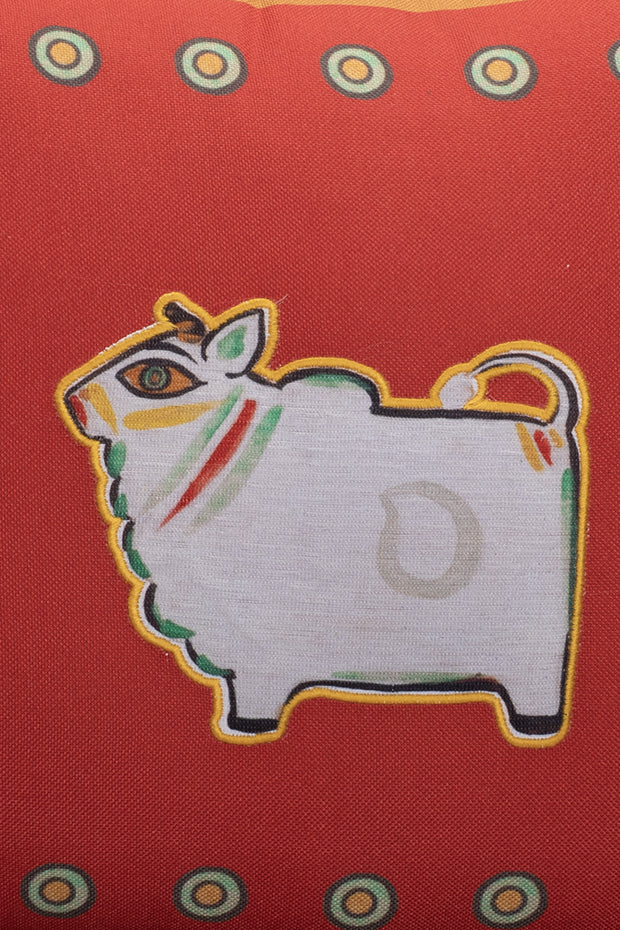 Featuring Jamini Roy’s earthy brown ‘Bull’, this cushion adds rustic folk character to your setting.