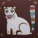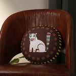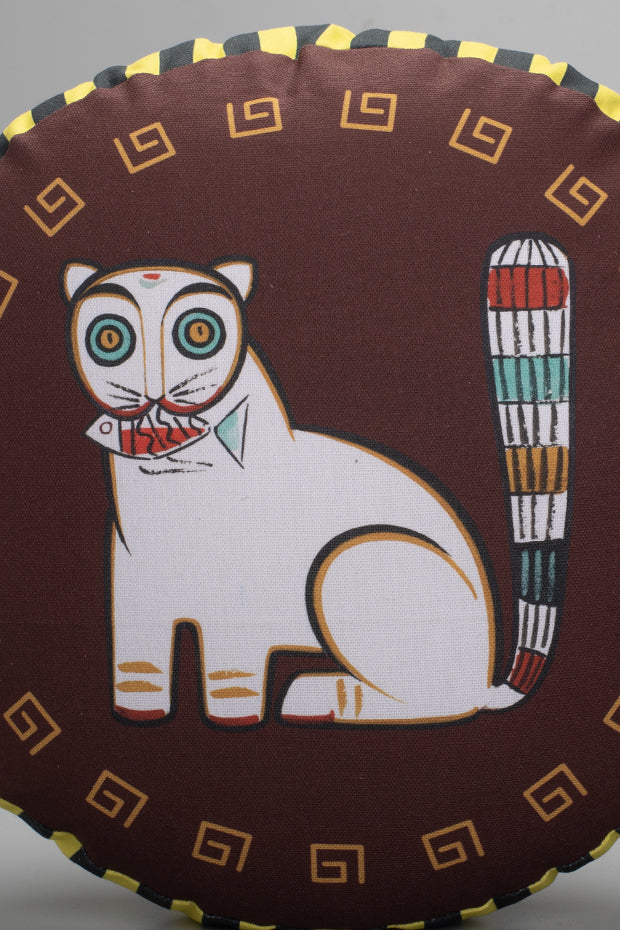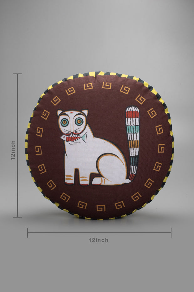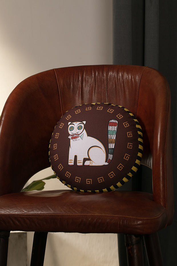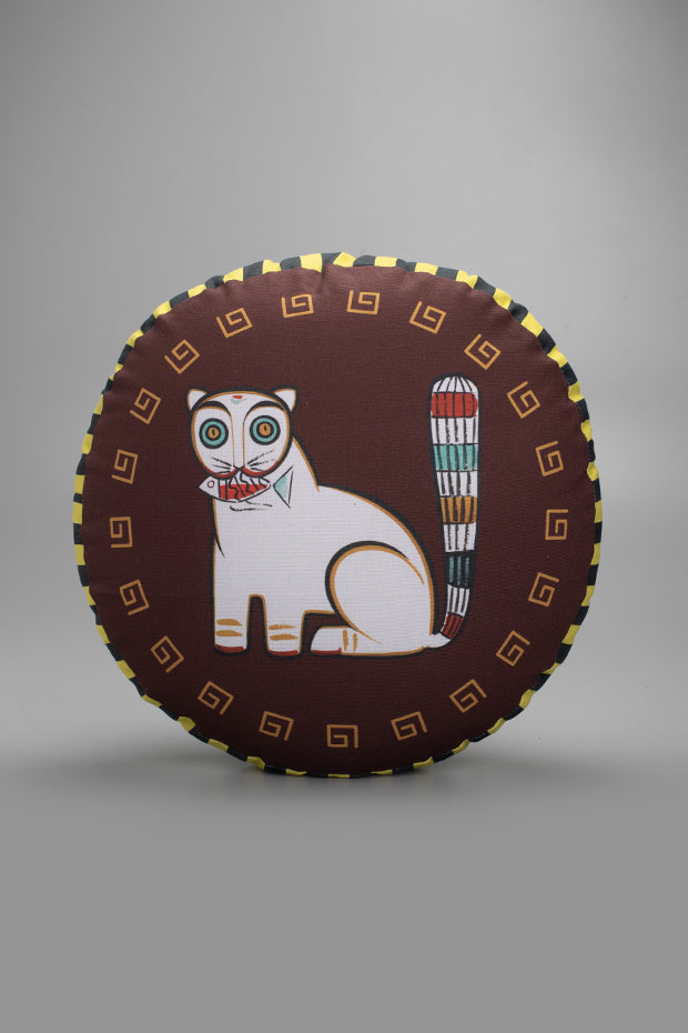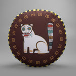Jamini Roy’s cat artwork in maroon hues makes this cushion a statement accent piece.