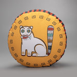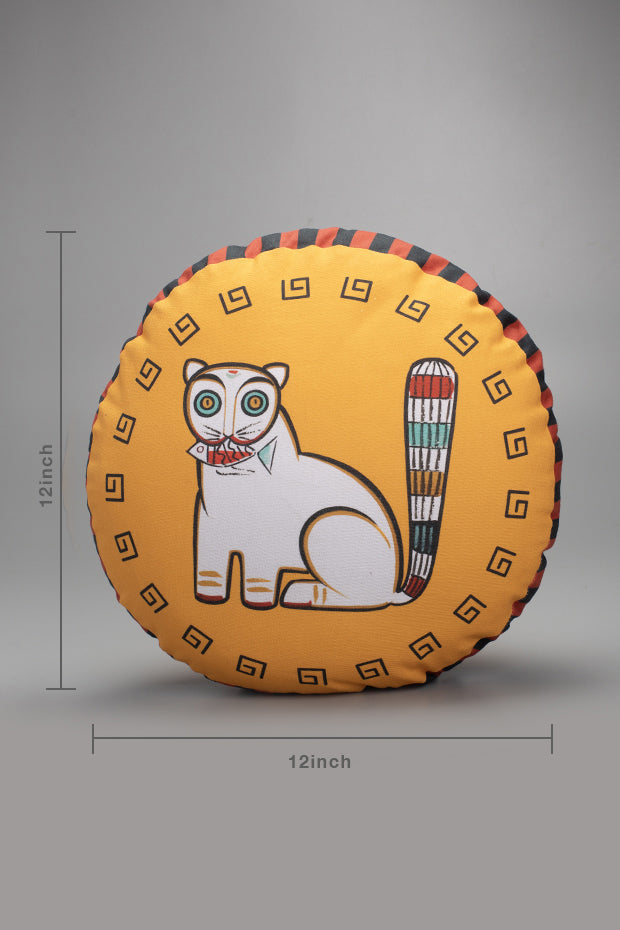 Mustard-toned Jamini Roy cat motif brings warmth and whimsy to your interiors.