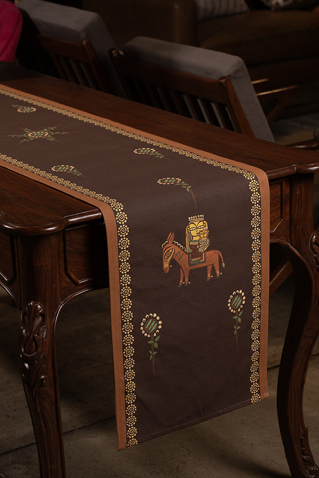 Jamini Egypt 4 Seater Runner – Jamini Roy’s Egypt-inspired motifs reimagined in a unique, artistic table runner.