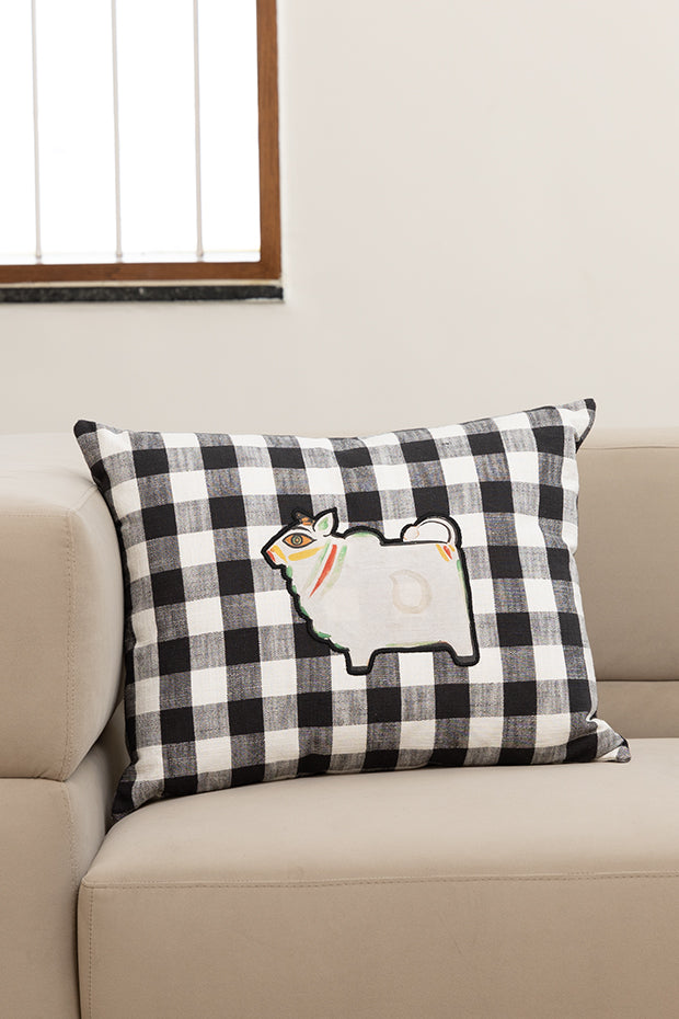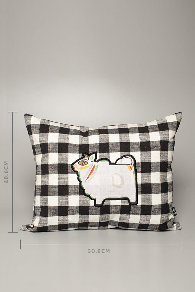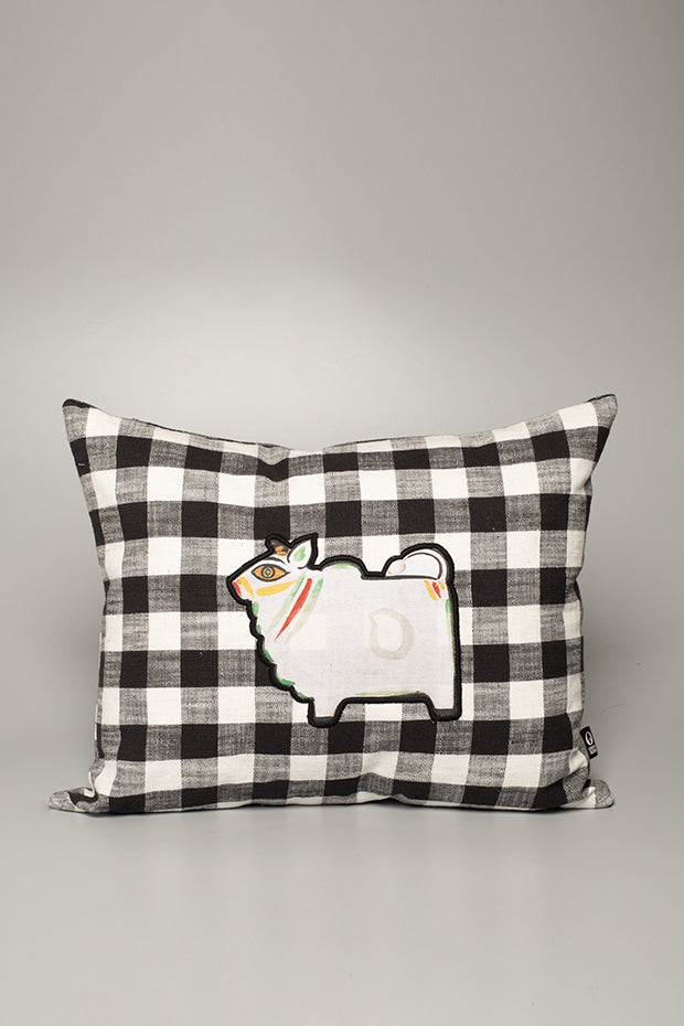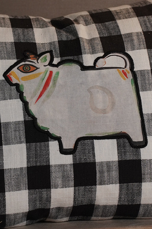 Inspired by Jamini Roy’s iconic ‘Cow’, this rectangular cushion brings a bold folk-art charm to your home.