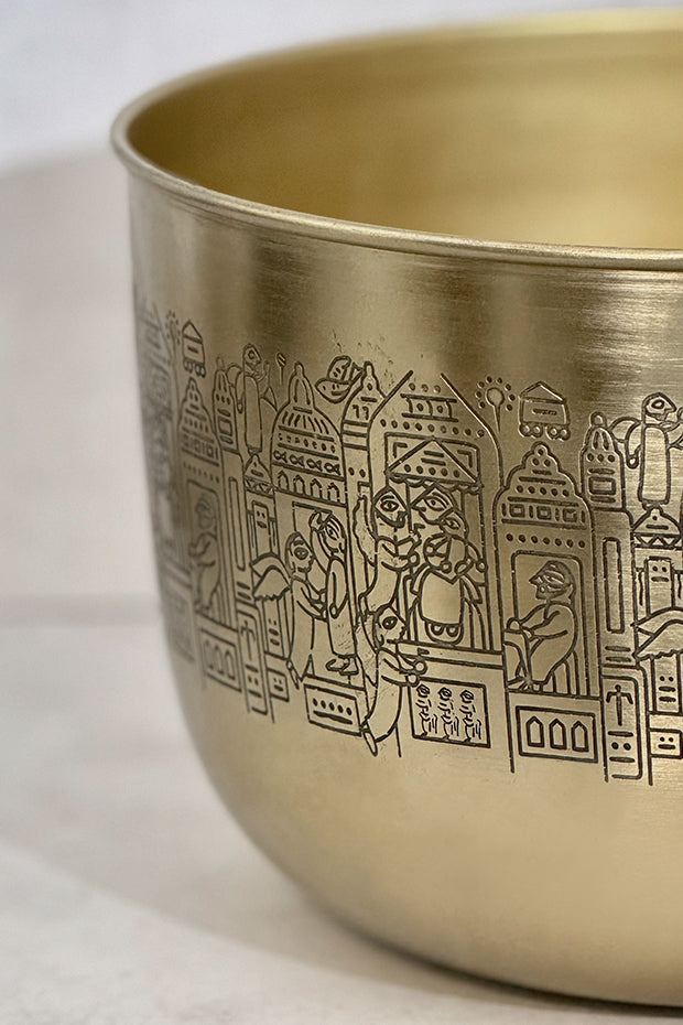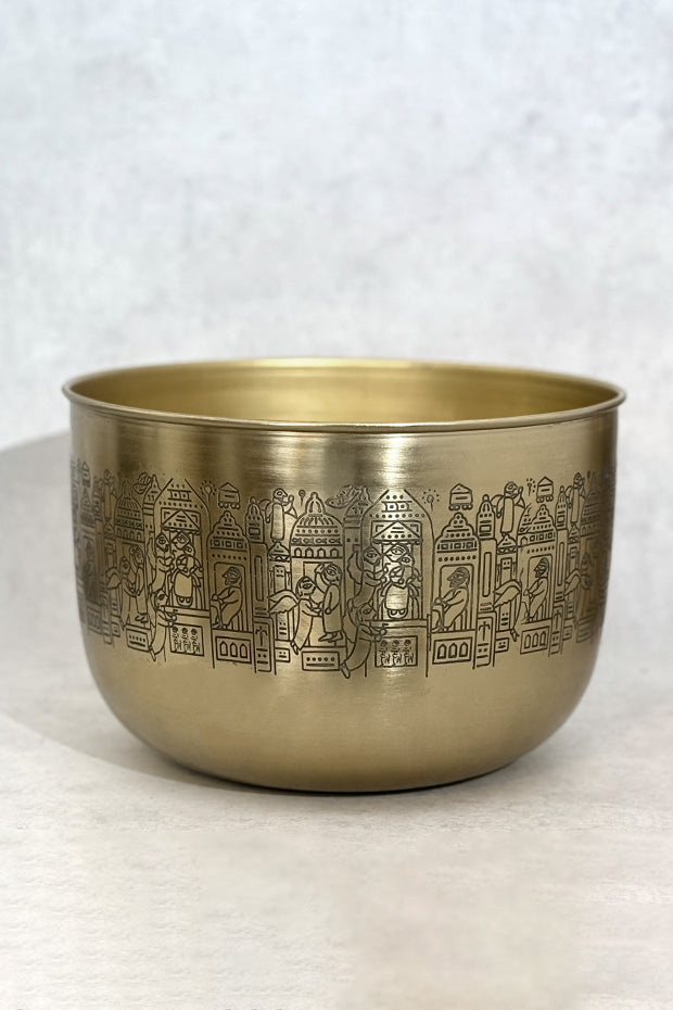 Large bowl inspired by Jamini Roy’s ‘St Ann’, bringing folk art depth to your dining setting.