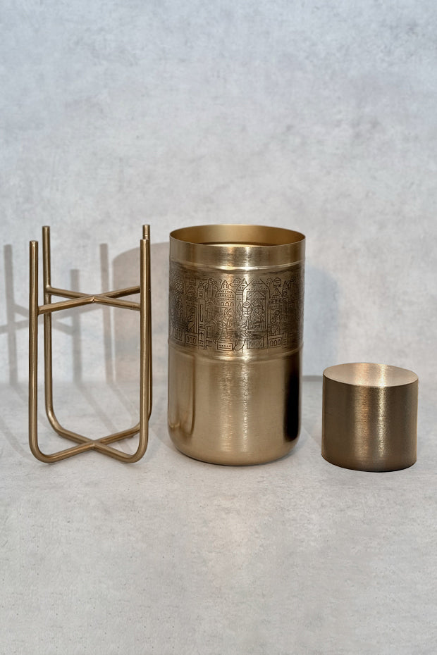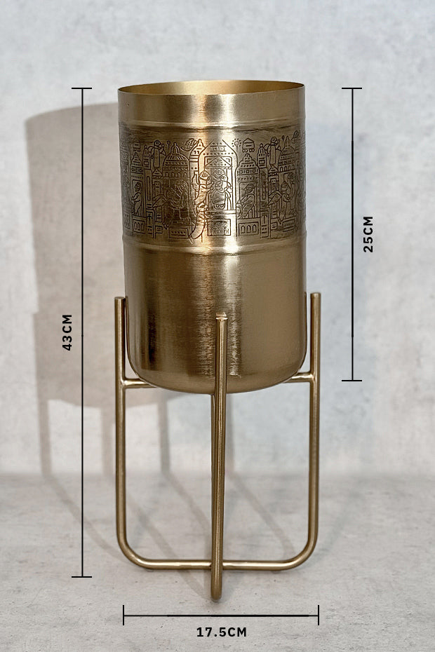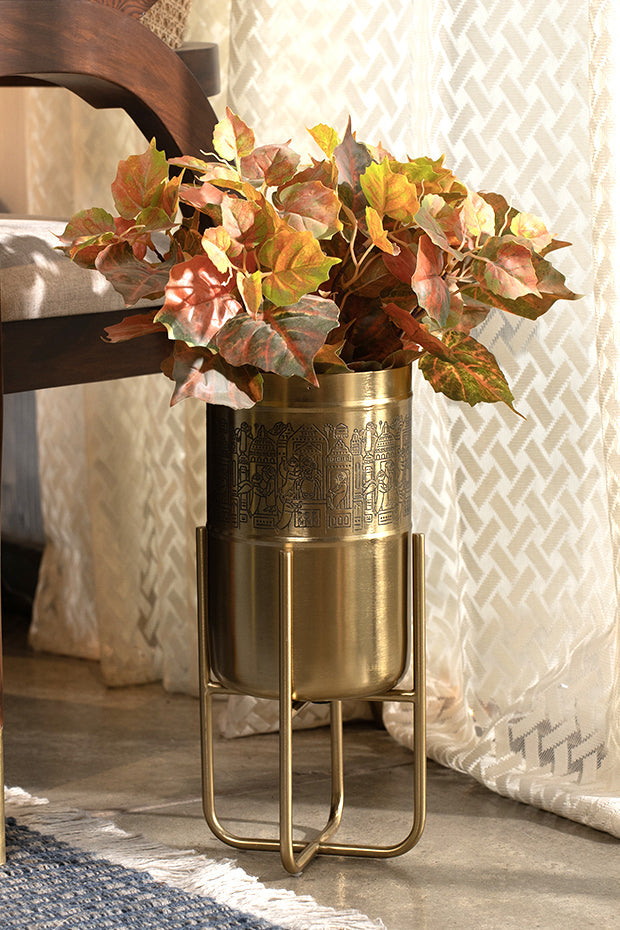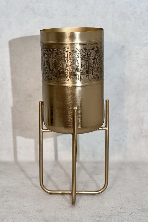 A stylish planter inspired by St. Ann motifs, perfect for indoor greens.