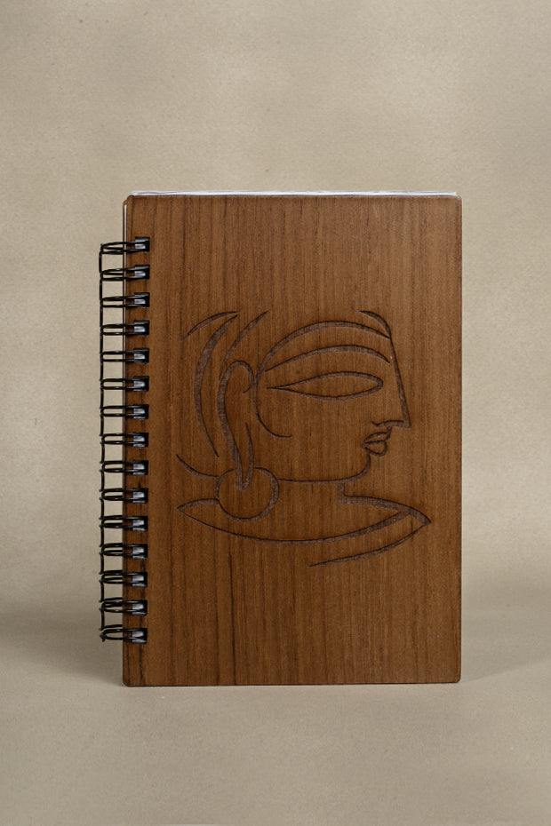 Large wooden notebook featuring Jamini Roy’s Woman artwork, a timeless folk-art collectible.
