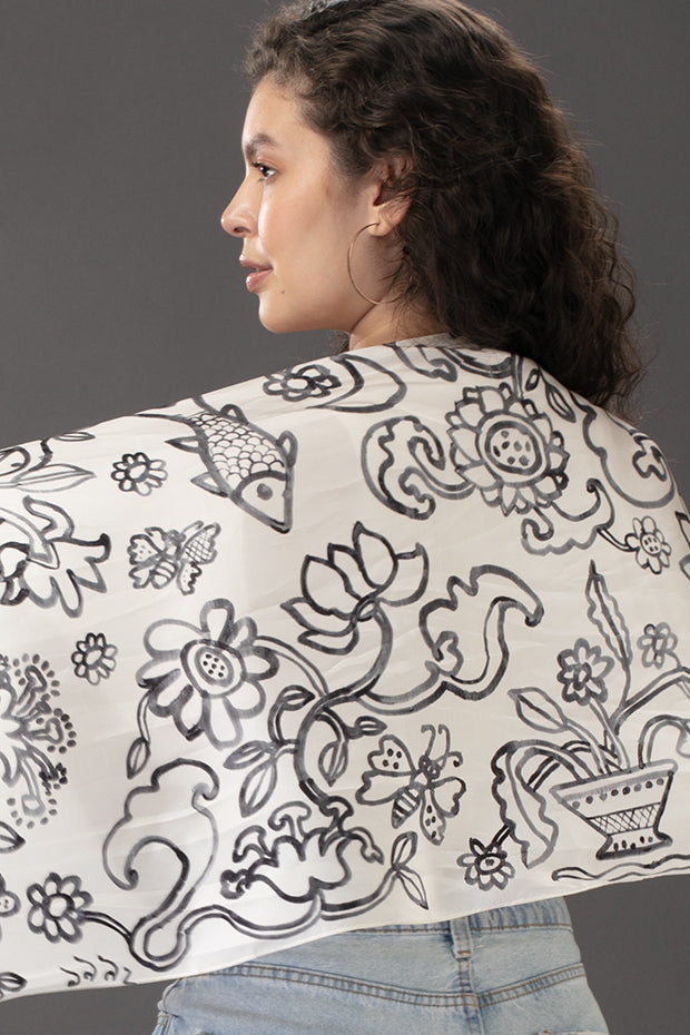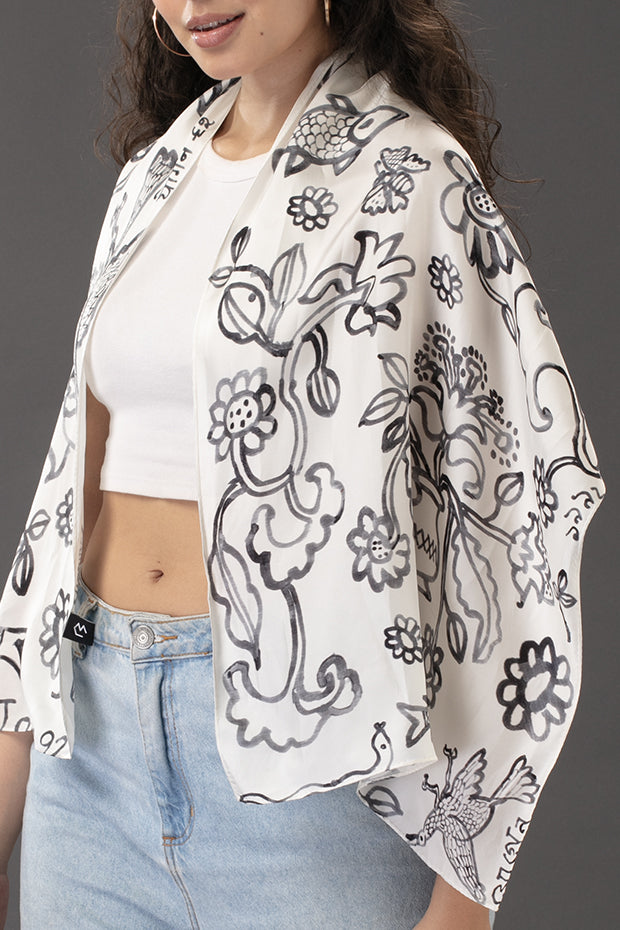Jogen Art stole, featuring expressive forms by Jogen Chowdhury, wearable as statement art.