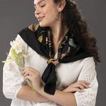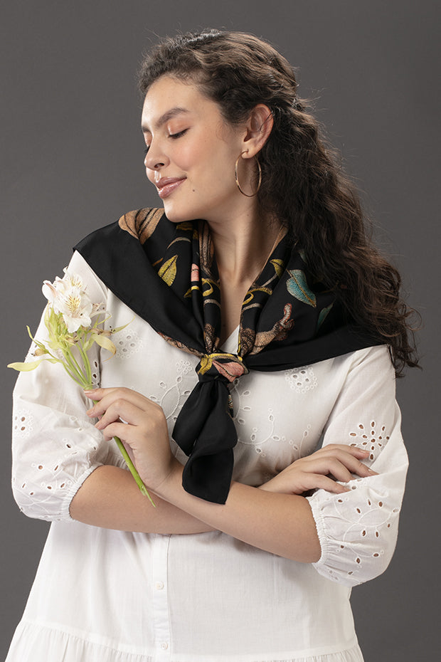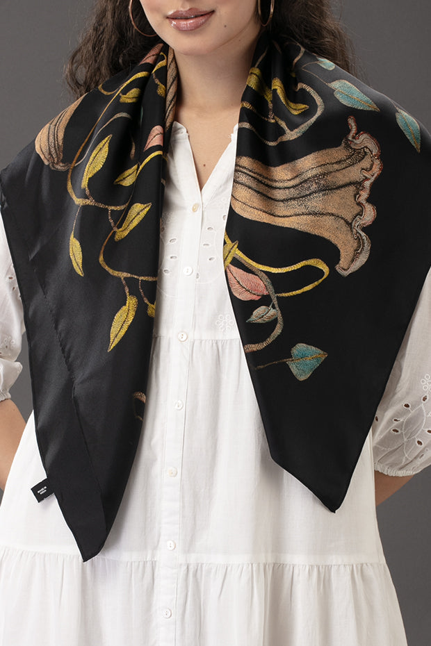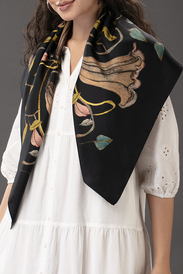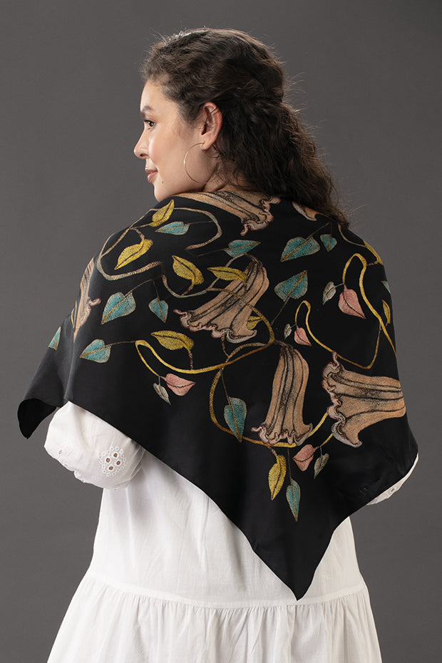 A square stole featuring Jogen’s floral art, wearable and unique.