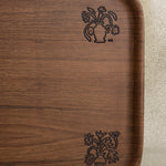 A wooden tray with Jogen’s Flower Vase art, serving with an artistic touch.