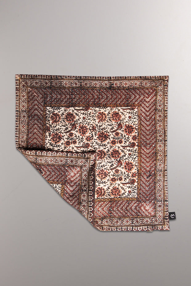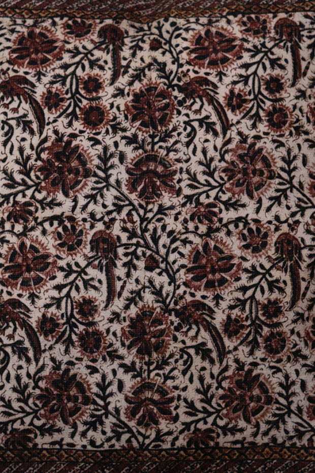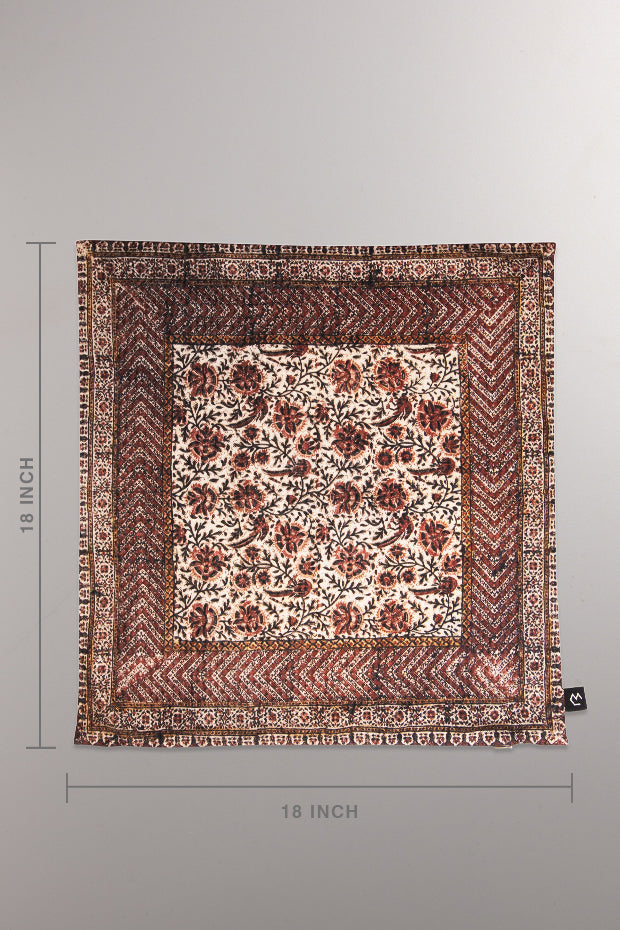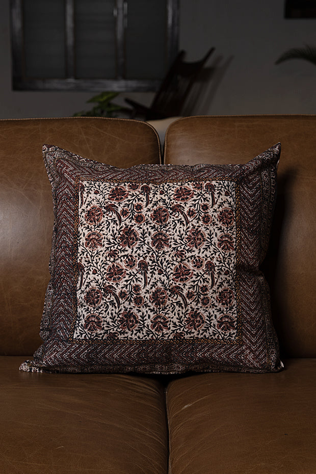 A large cushion cover with Kalamkari prints, celebrating India’s textile heritage.