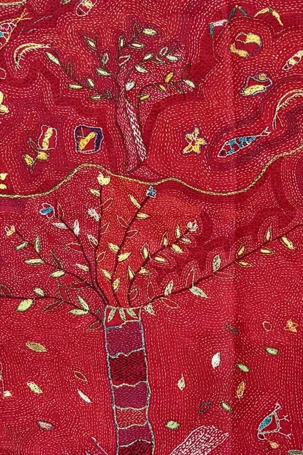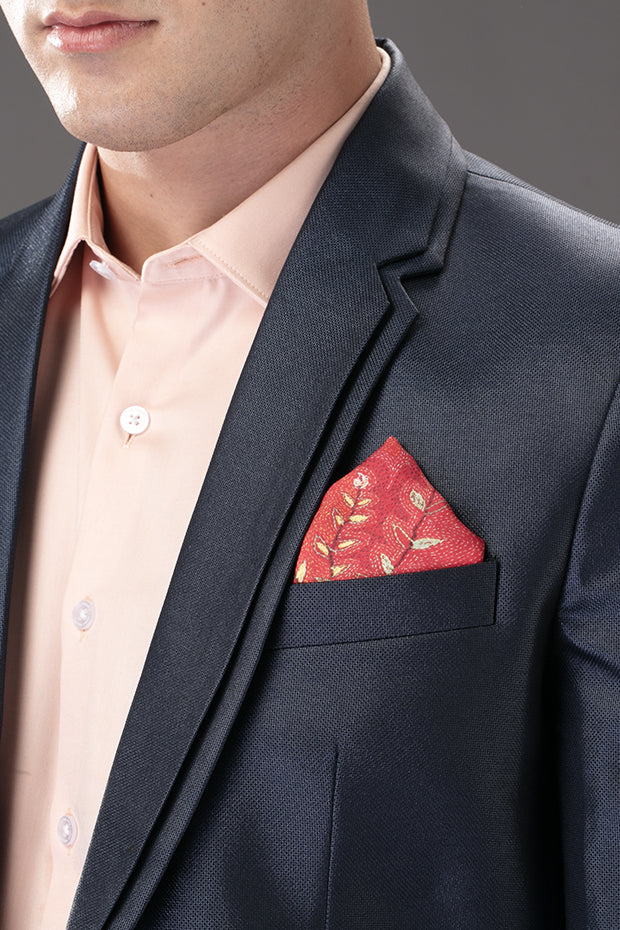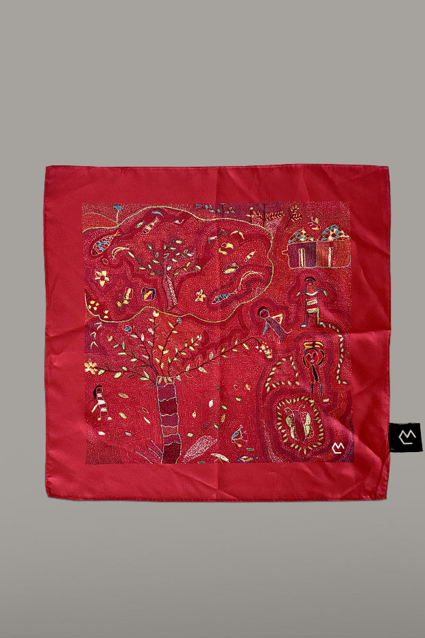 Kantha Red pocket square, bold and striking with folk embroidery aesthetics.