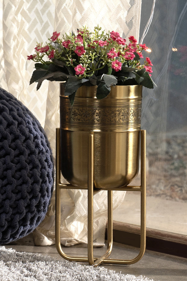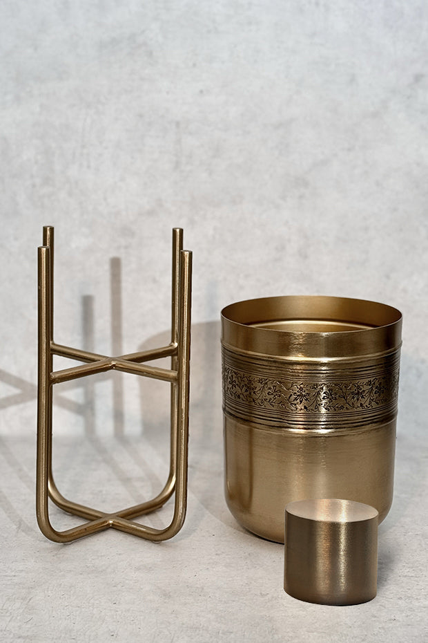 A decorative planter with stand inspired by KCR artwork, modern home accent.