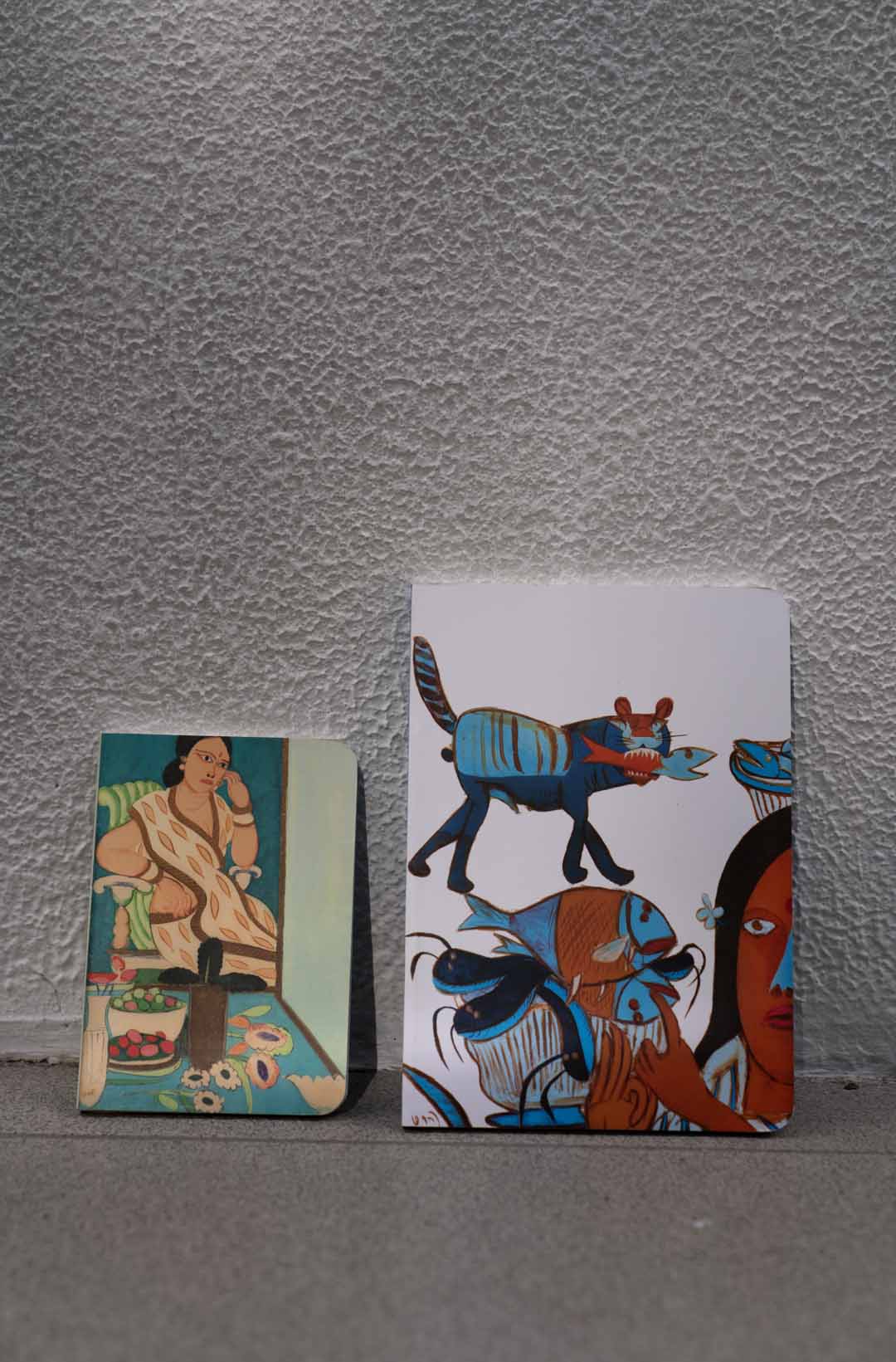 This notebook set features artwork inspired by “Still Life with Fish” by K.G. Subramanyan, one of India’s most influential modern artists. Created around 1980, the original work painted in oil on acrylic sheet reflects his playful, imaginative style and bold visual language.
