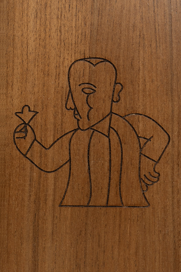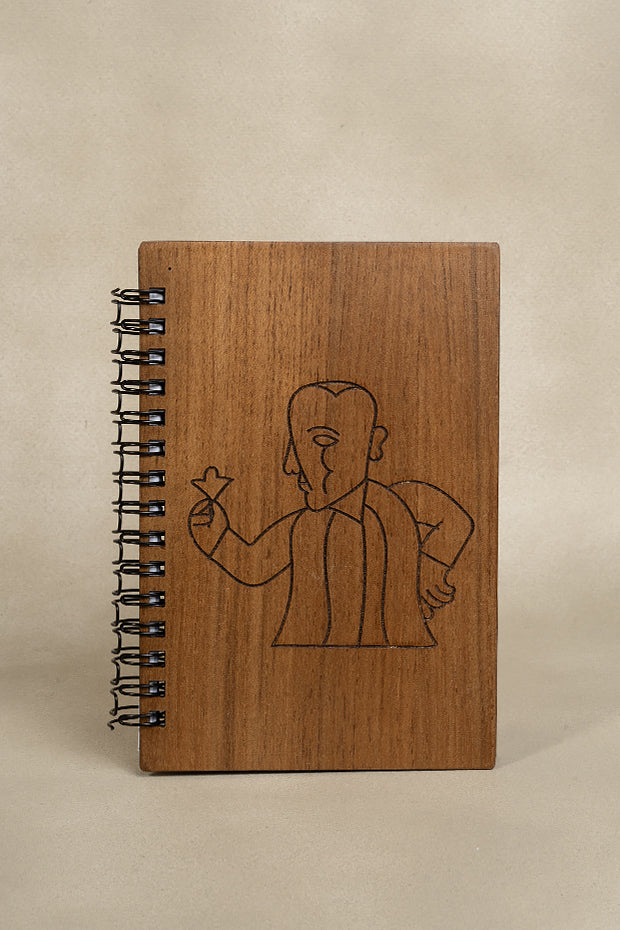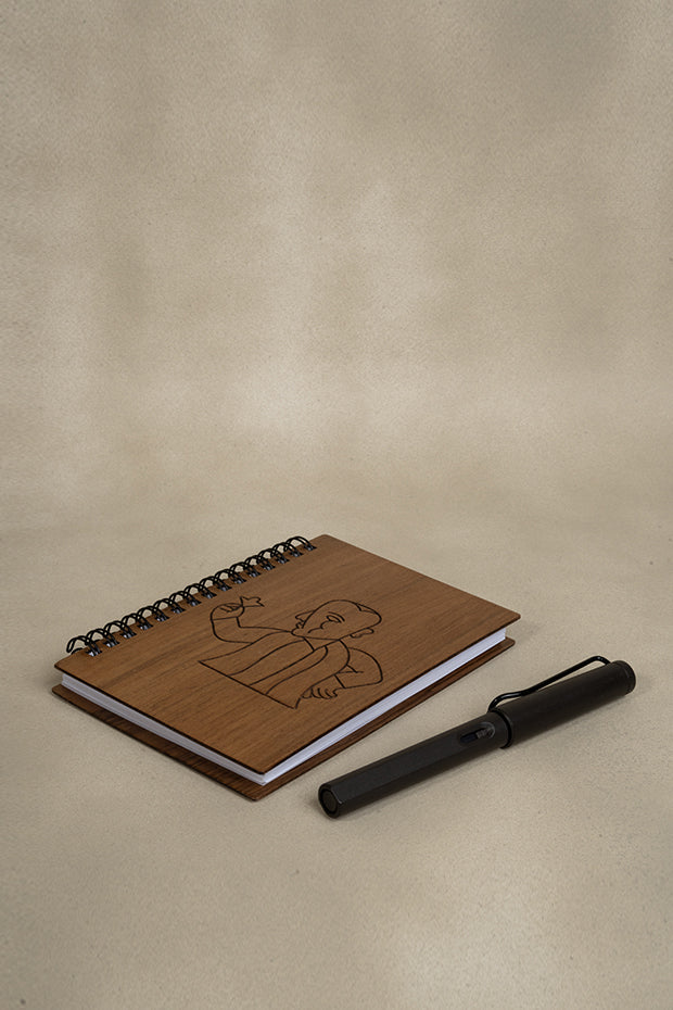 Small wooden notebook engraved with Man & Flower design, artistic and minimal.
