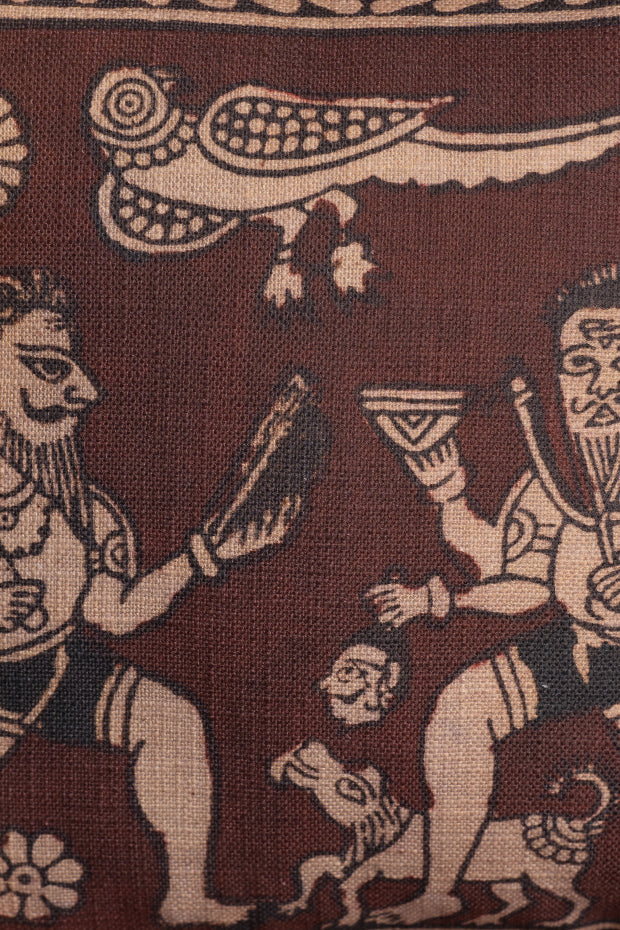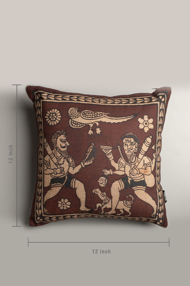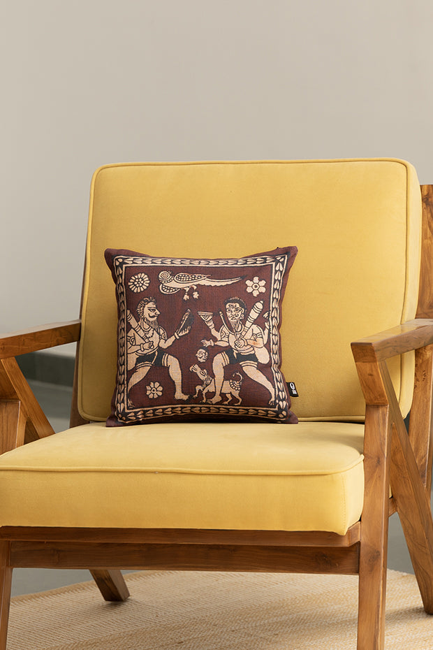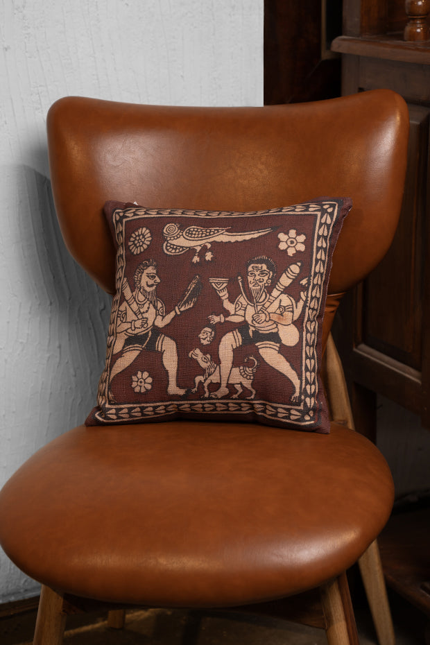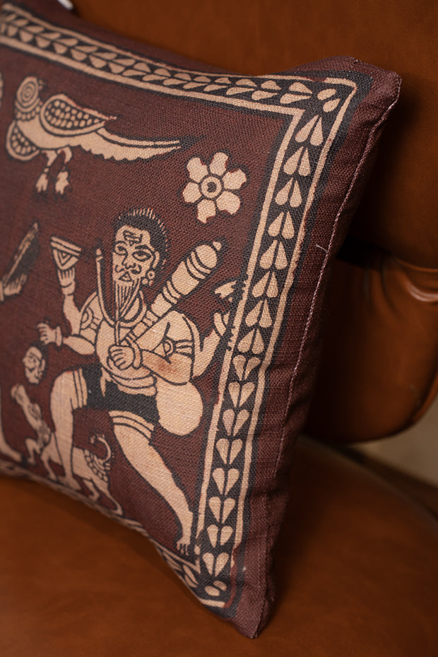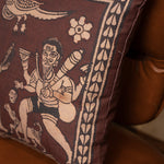 A small cushion inspired by Mata ni Pachedi art, celebrating folk heritage in vibrant hues.