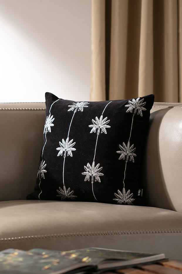 A refined white cushion with Meena Ashwin’s artwork, adding elegance and sophistication to your décor.