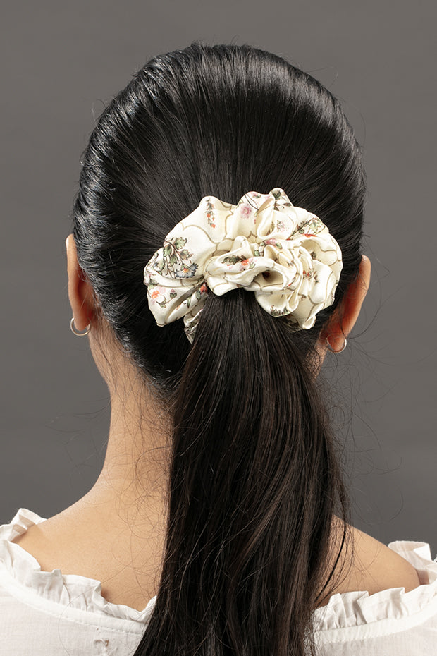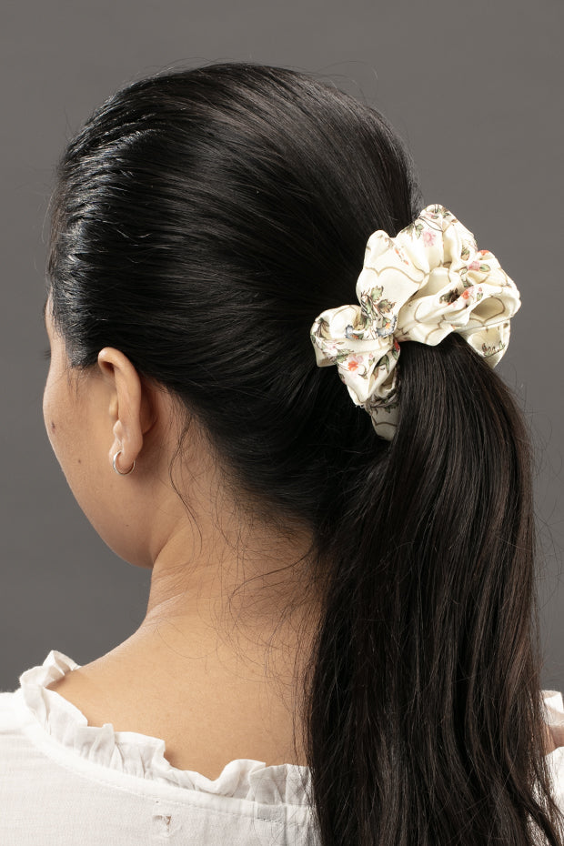 Elegant and timeless, the Mughal Print Scrunchie brings a royal charm to everyday styling. Soft, gentle on the hair, and designed for a secure yet comfortable hold, it adds a refined touch to both casual and dressy looks.