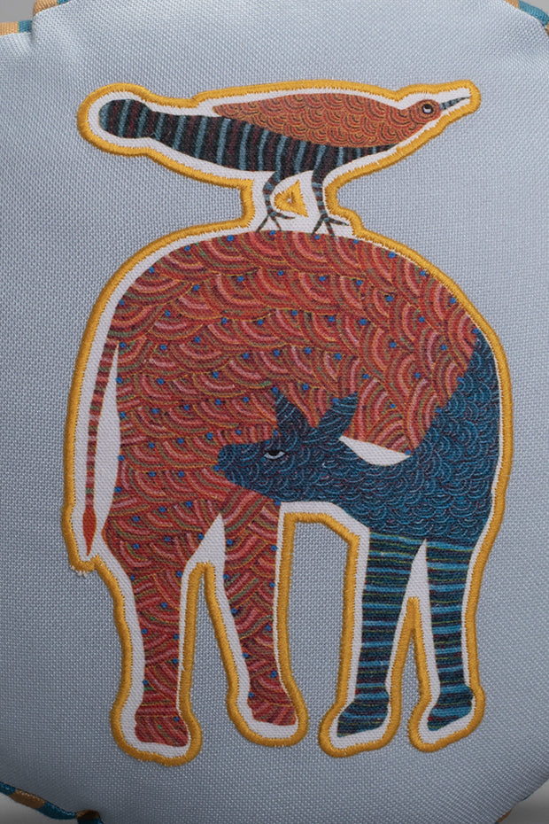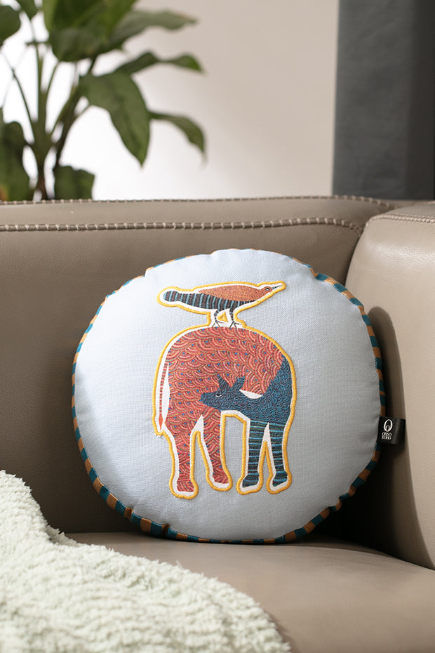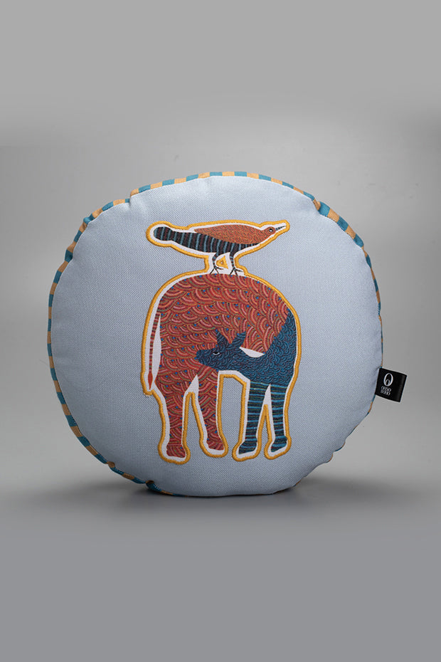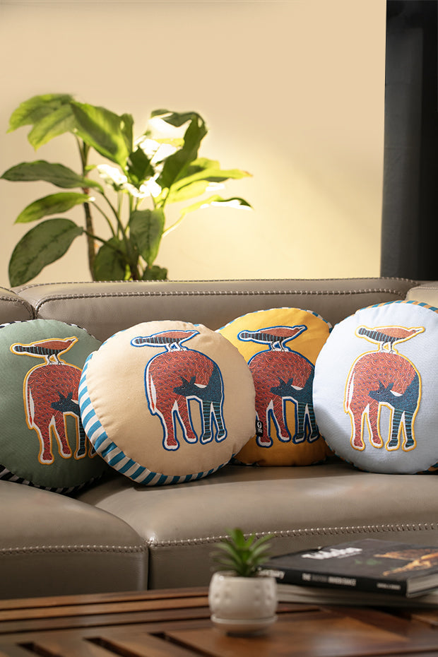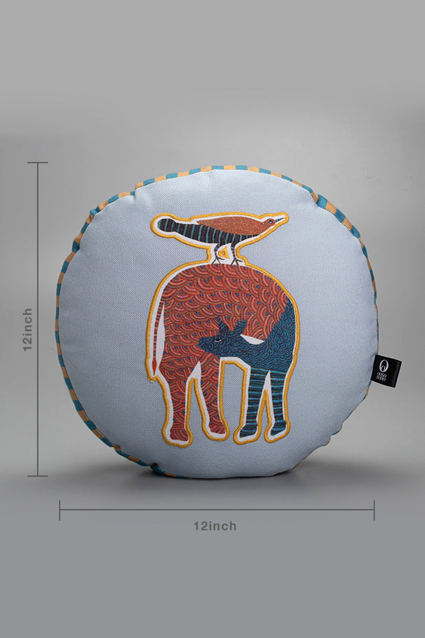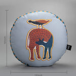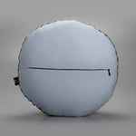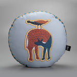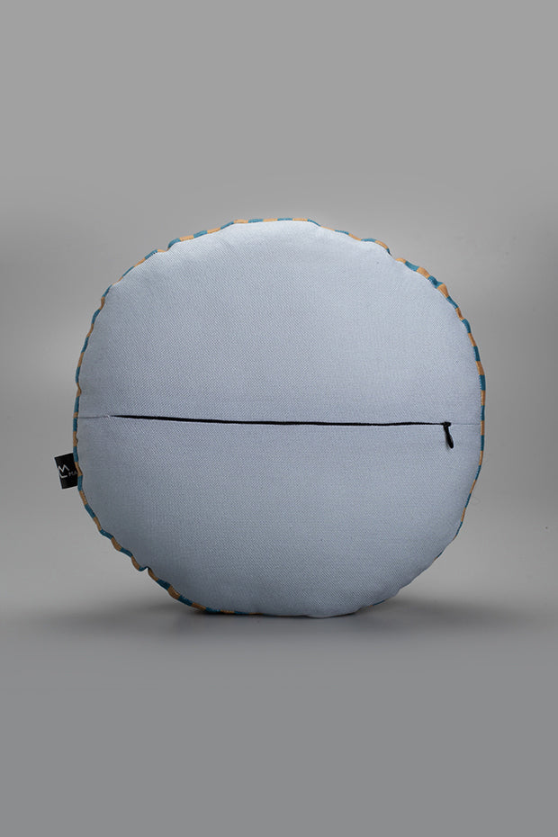 Round cushion with Nankushiya designs in blue, soft and artistic.