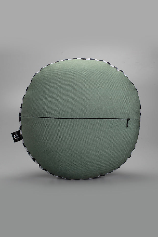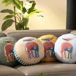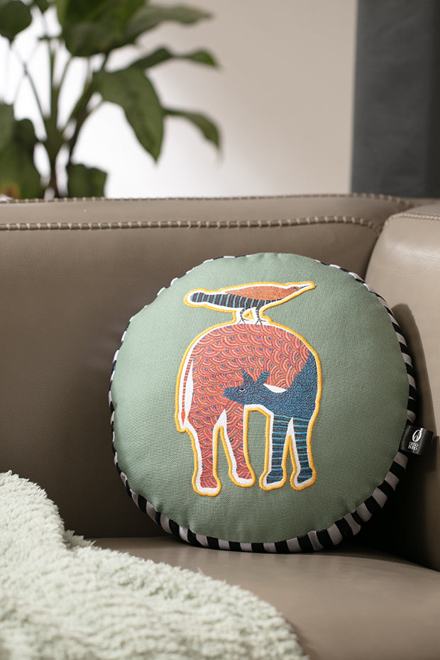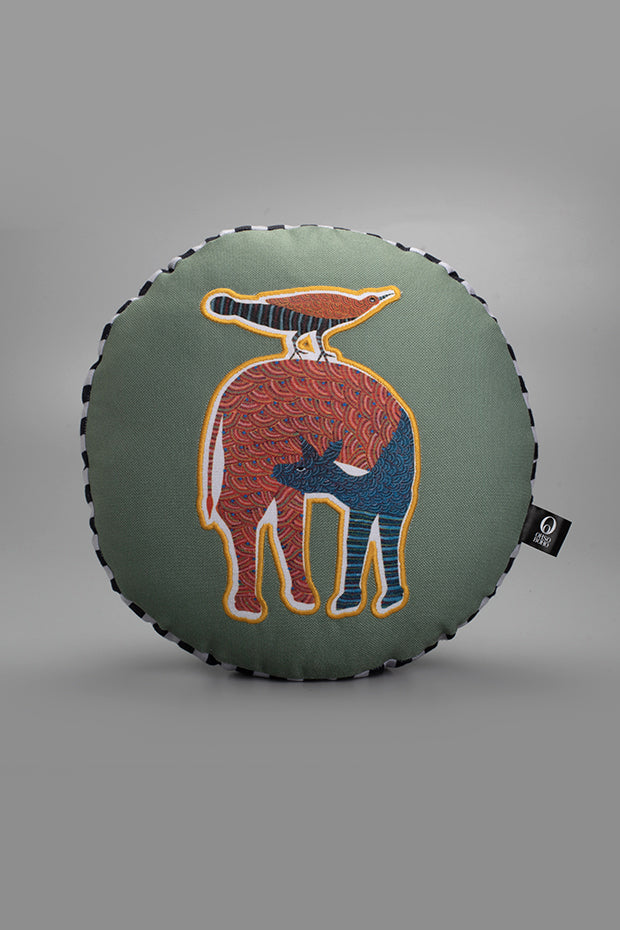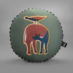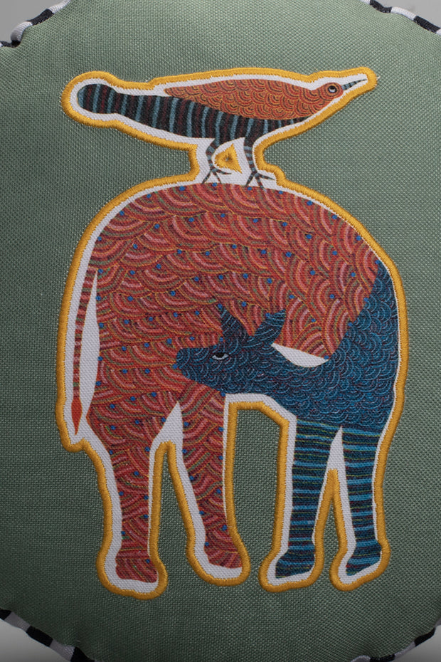 Nankushiya-inspired green cushion with bold, tribal motifs to brighten up your space.