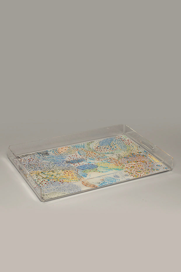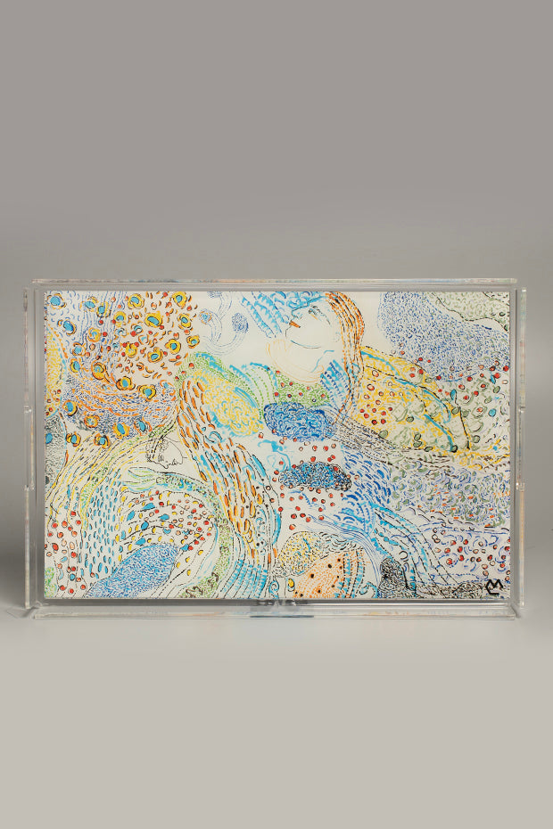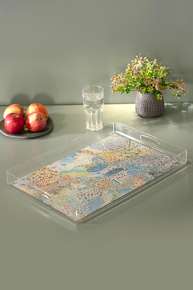 Painted Fabric Tray L, textured artistry on a functional base, merging craft and utility.