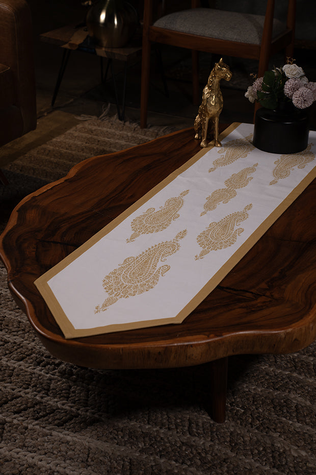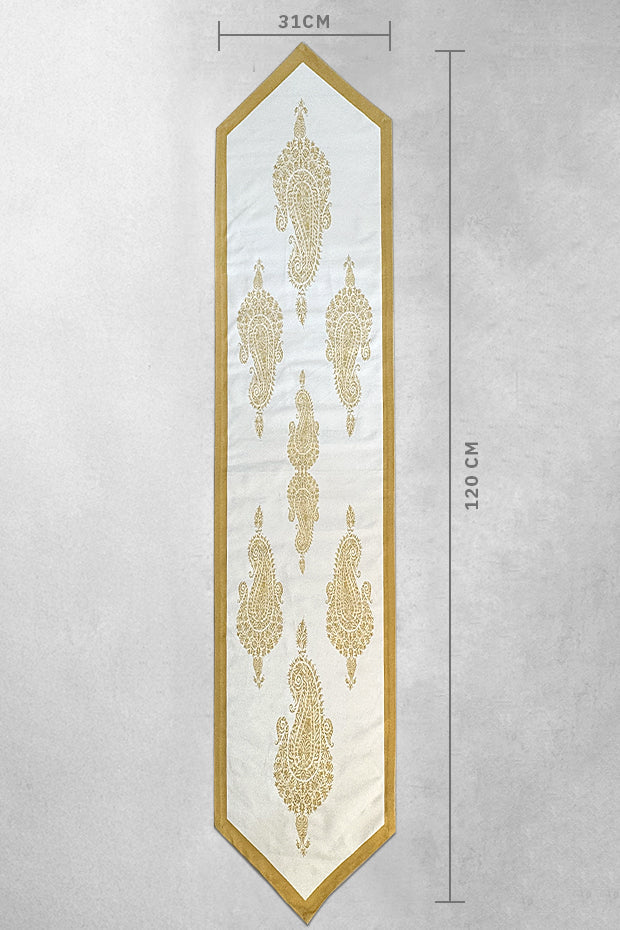 Paisley Gold 4 Seater Runner – A golden paisley runner that adds a festive sparkle to your table.