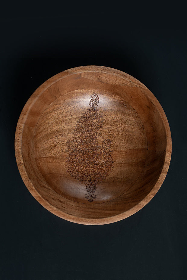 A serving bowl adorned with timeless paisley patterns, classic and versatile for any occasion.