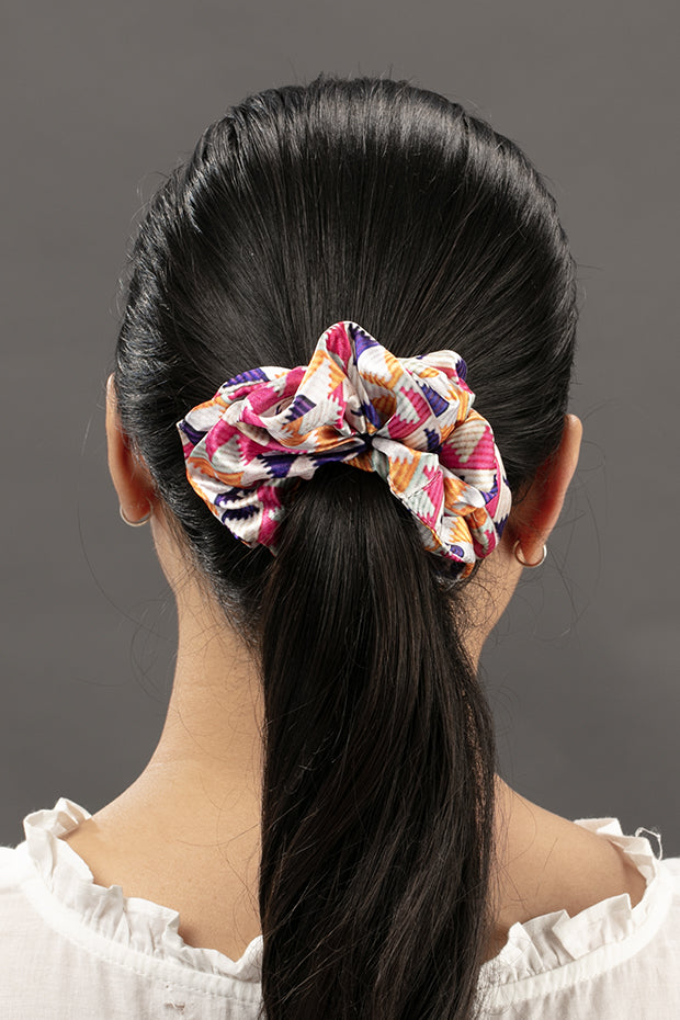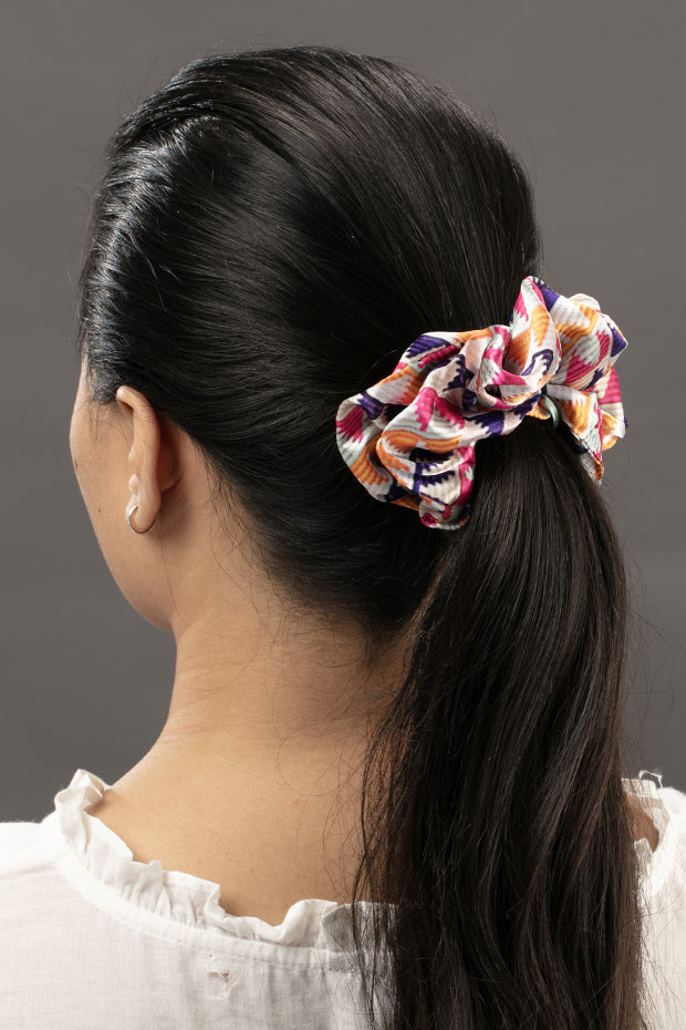 Bright, playful, and full of character, the Pancharanga Phulkari Scrunchie adds a vibrant pop of colour to any hairstyle. Inspired by traditional Phulkari patterns, it offers a comfortable, gentle hold perfect for everyday wear or a fun style upgrade.