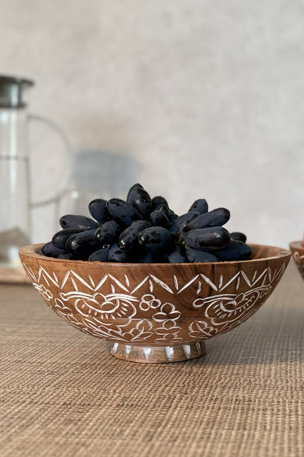 A finely engraved bowl with Ramayana-inspired border motifs, blending storytelling with utility.