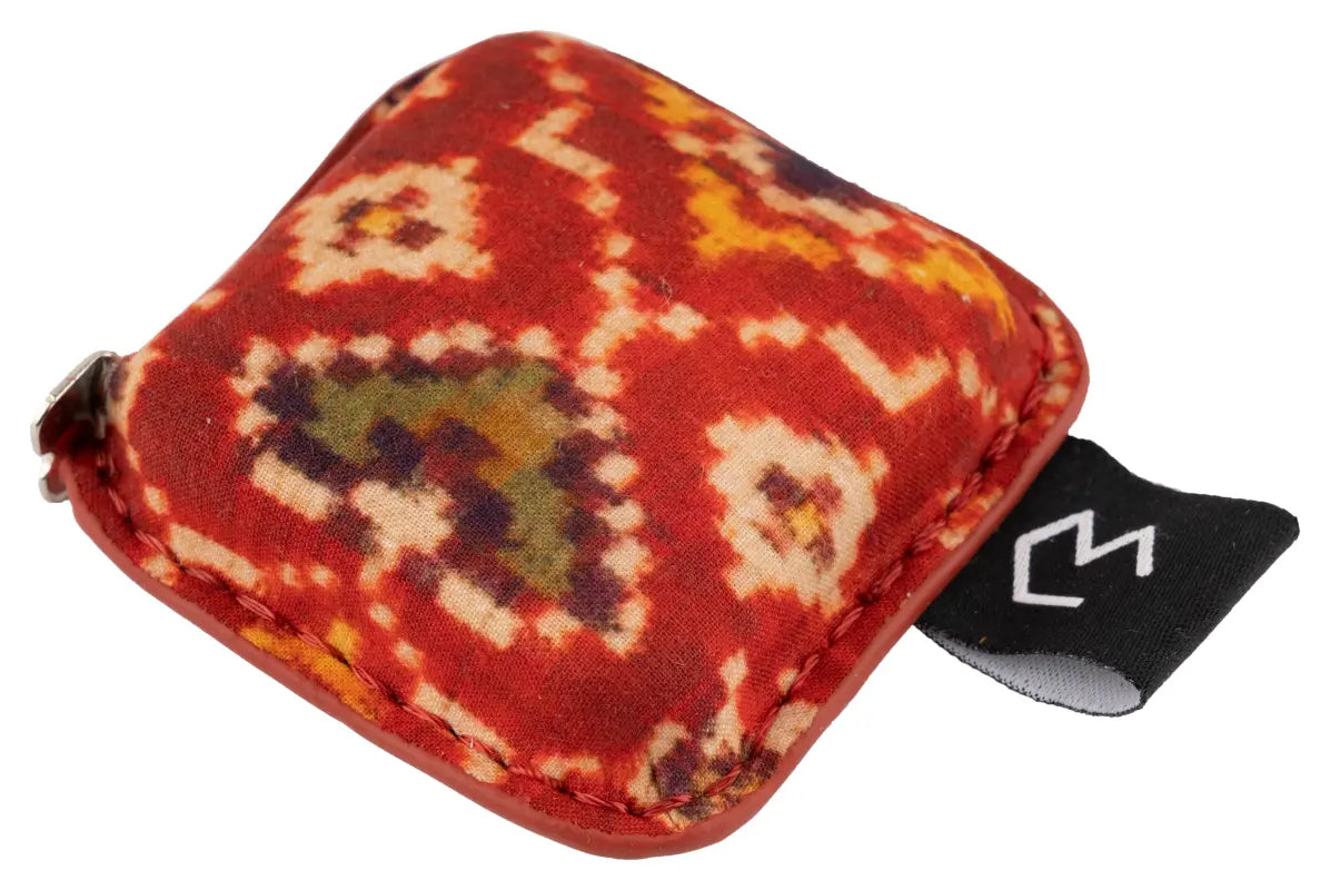 Red Patola patterned measuring tape, showcasing heritage textile motifs in a handy tool.