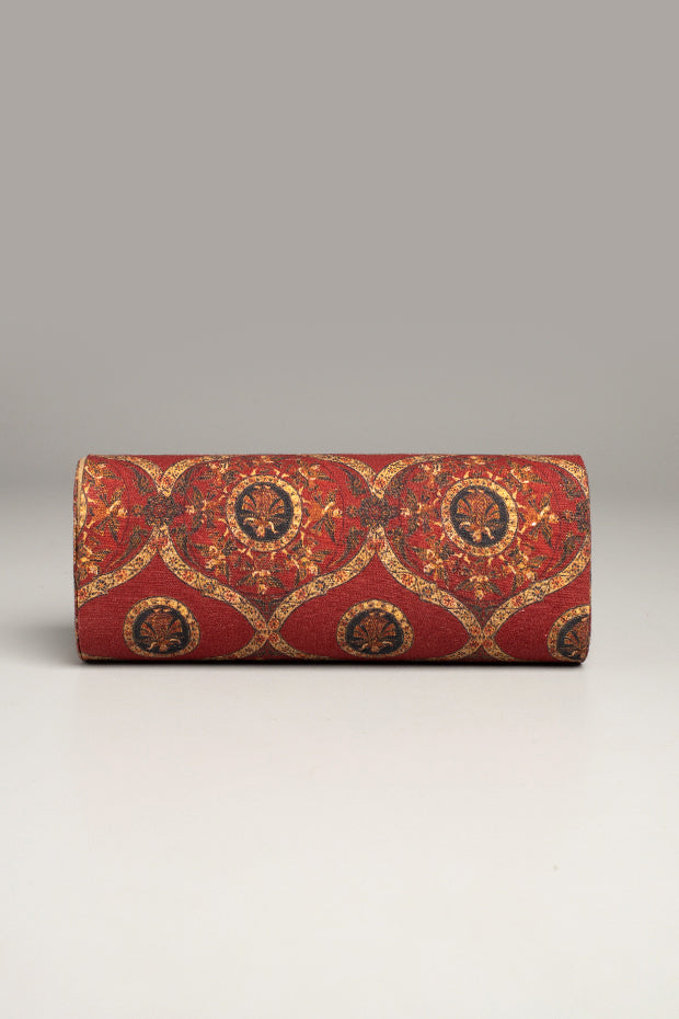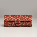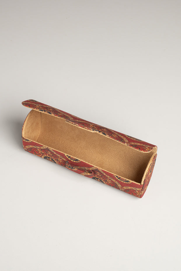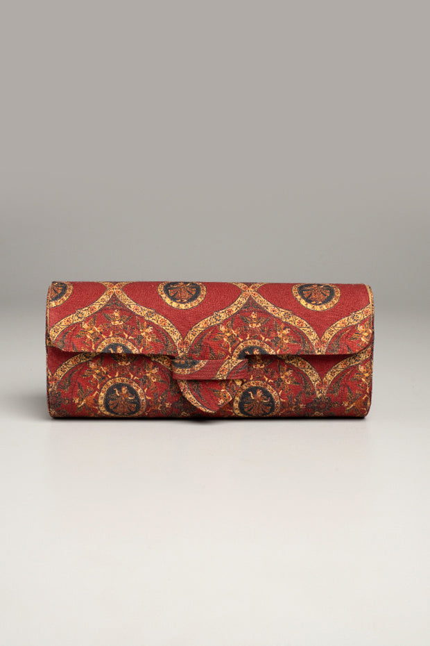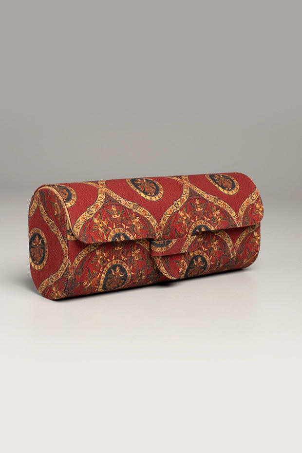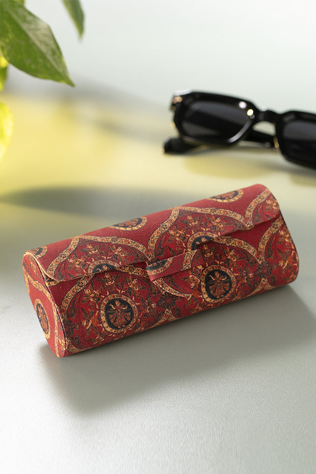 A spectacle case with red Pichwai-inspired designs, practical yet cultural.