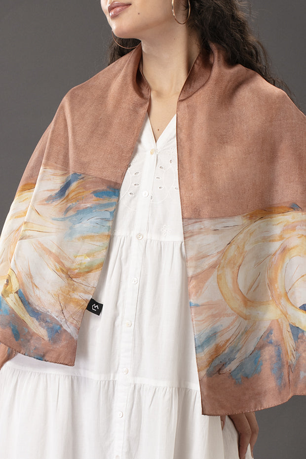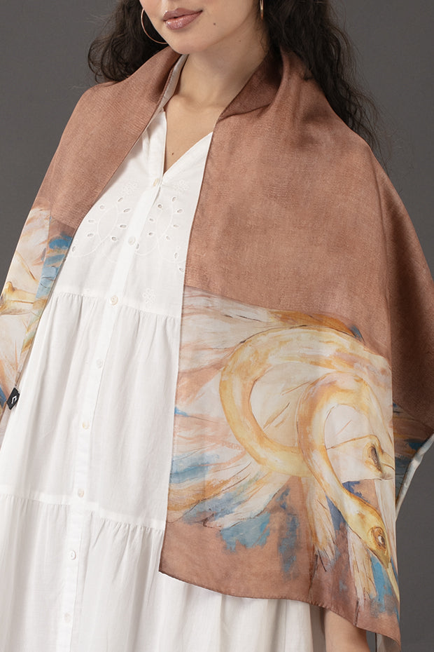 A small silk stole inspired by Shuvuprasad’s works, wearable art in every detail.