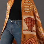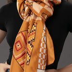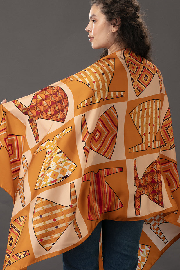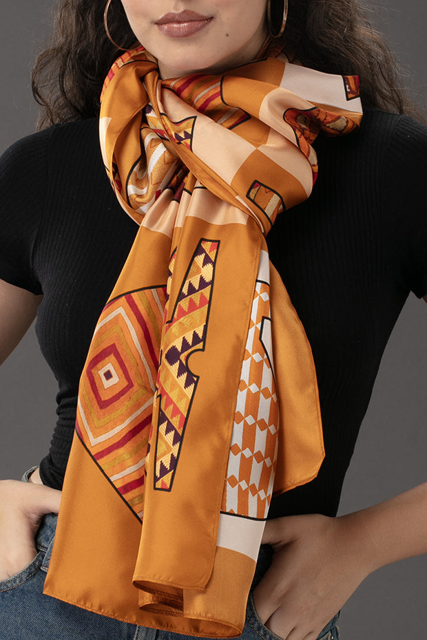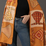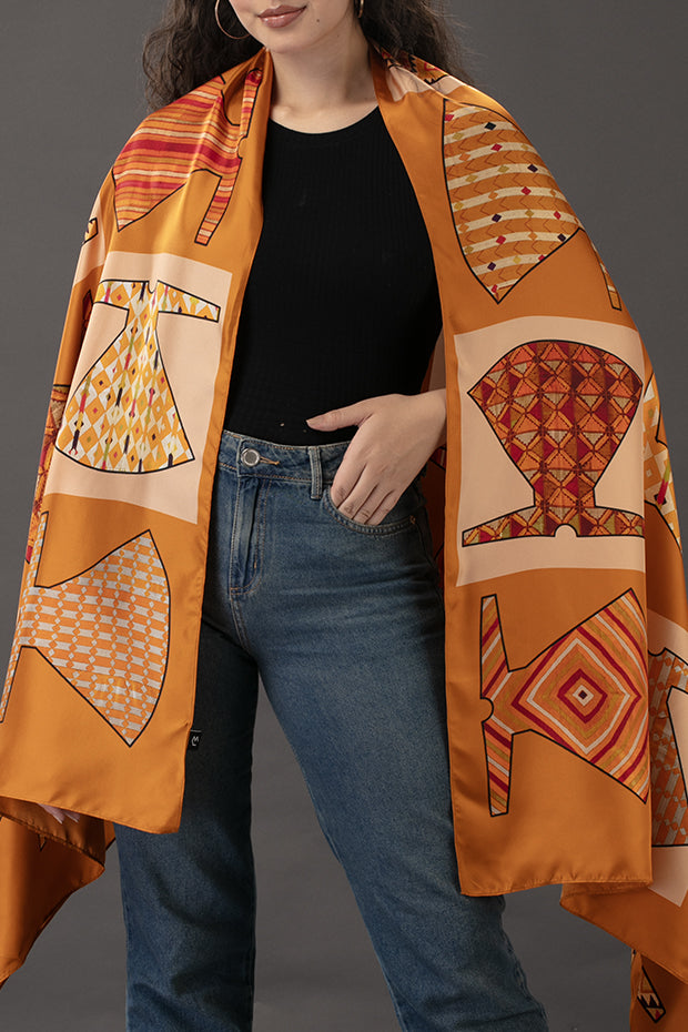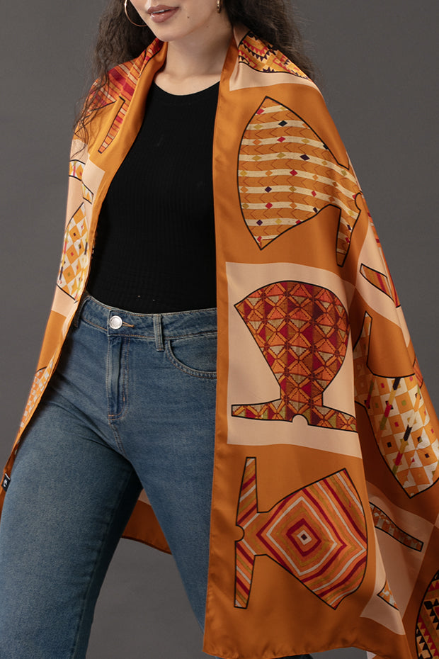 A stole featuring yellow Phulkari embroidery-inspired prints, vibrant and elegant.